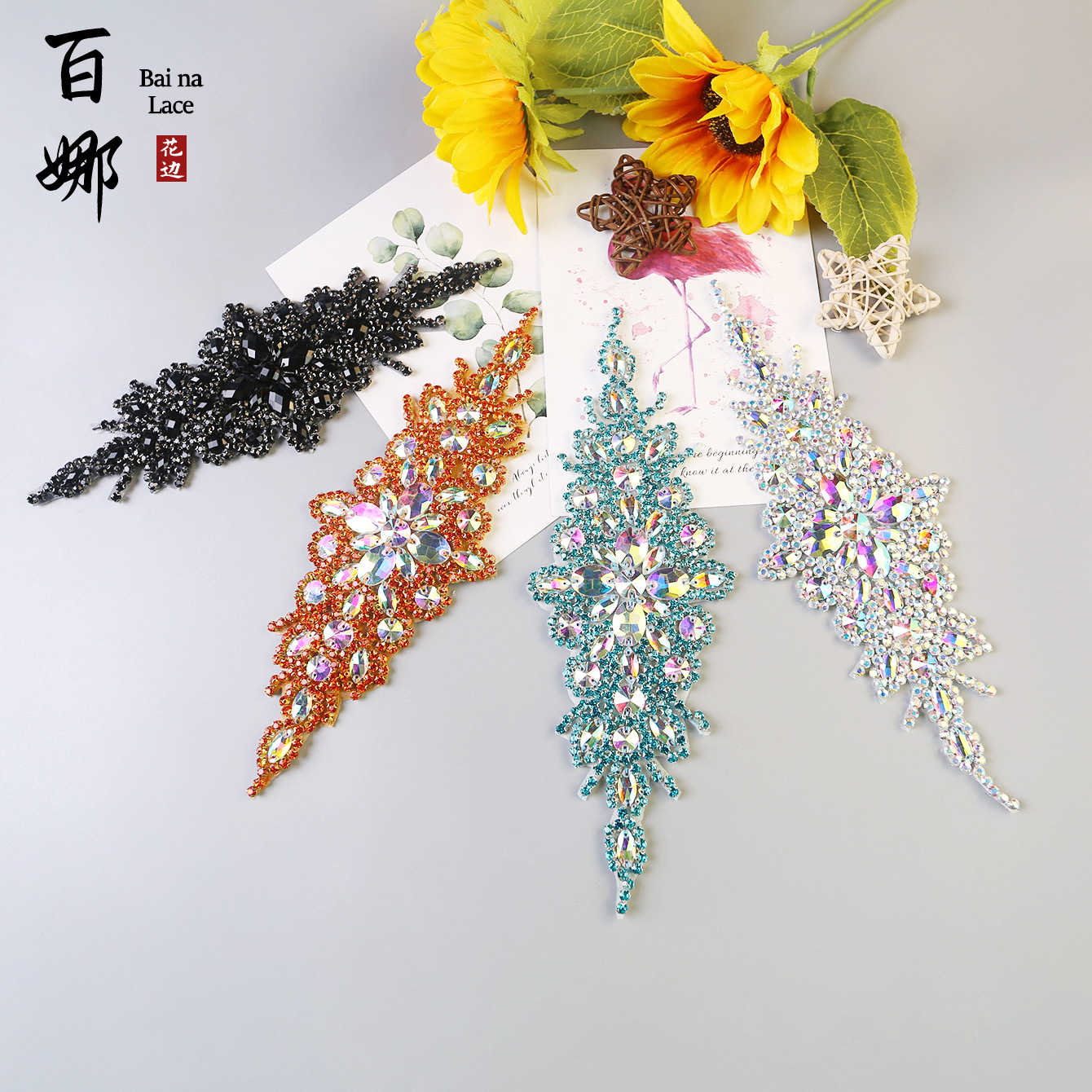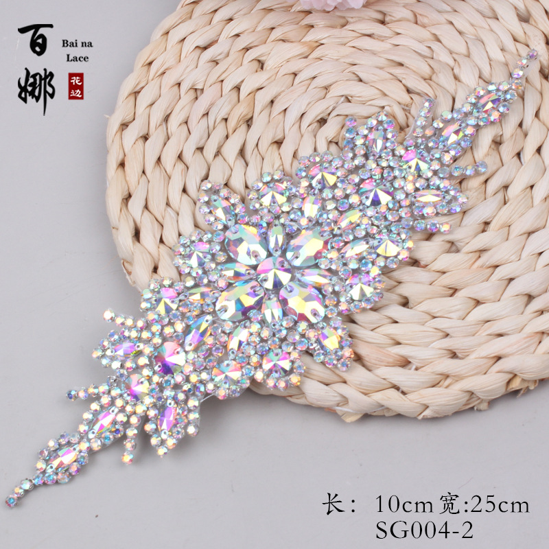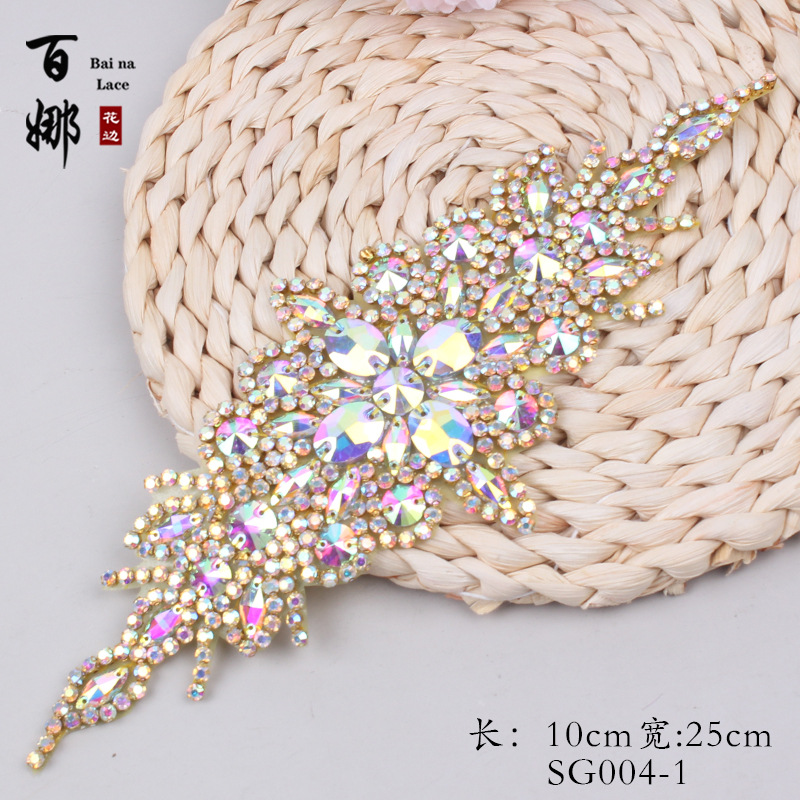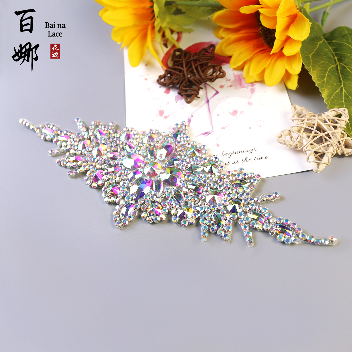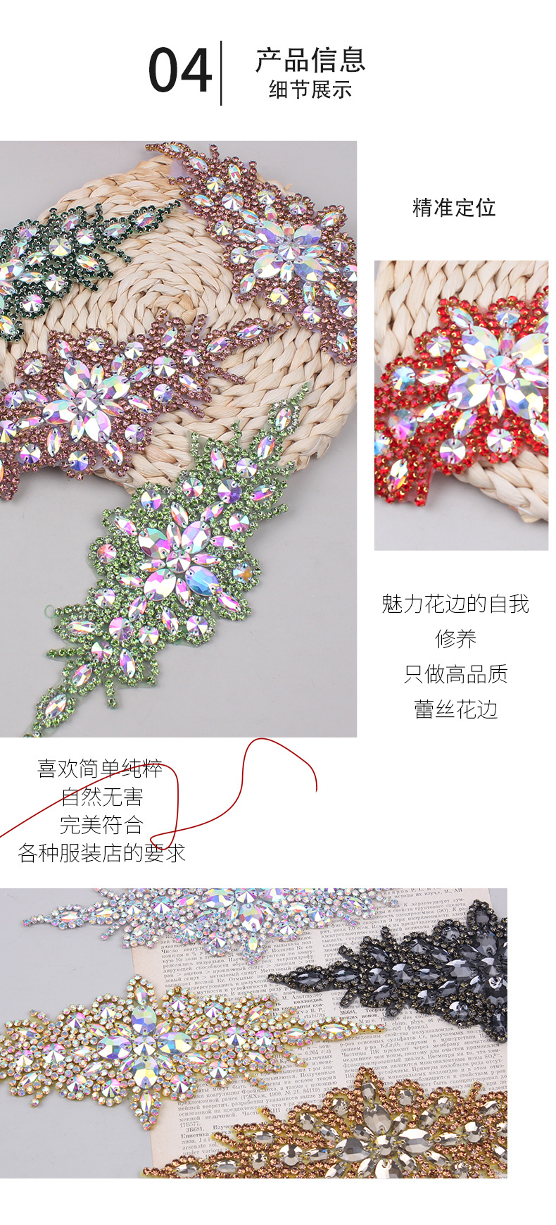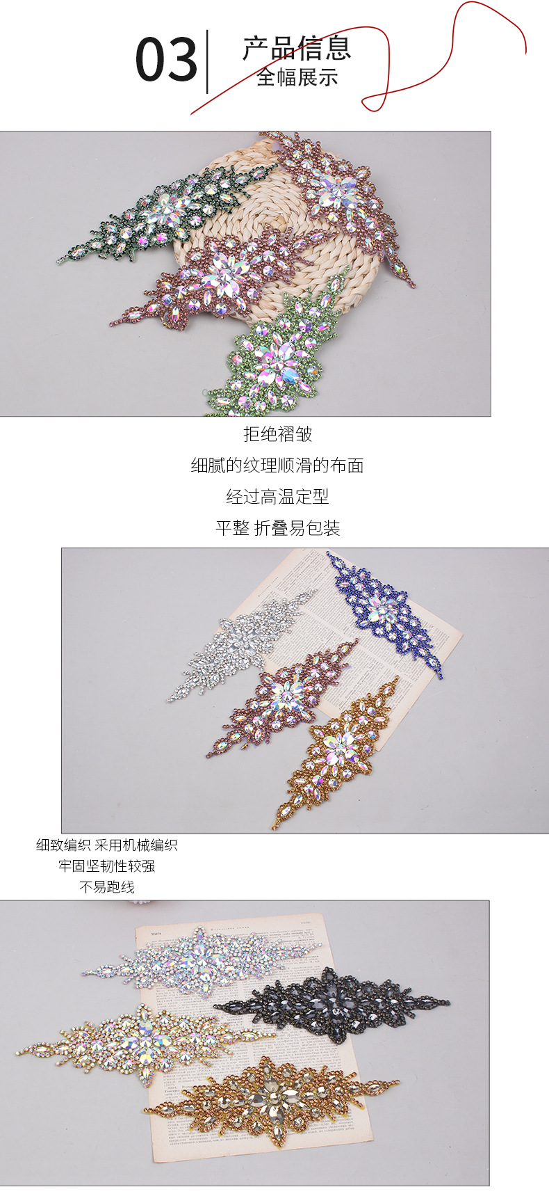 纺织辅料花朵 背胶贴花DIY镶钻连衣裙腰部珍珠头布贴重工钉珠花