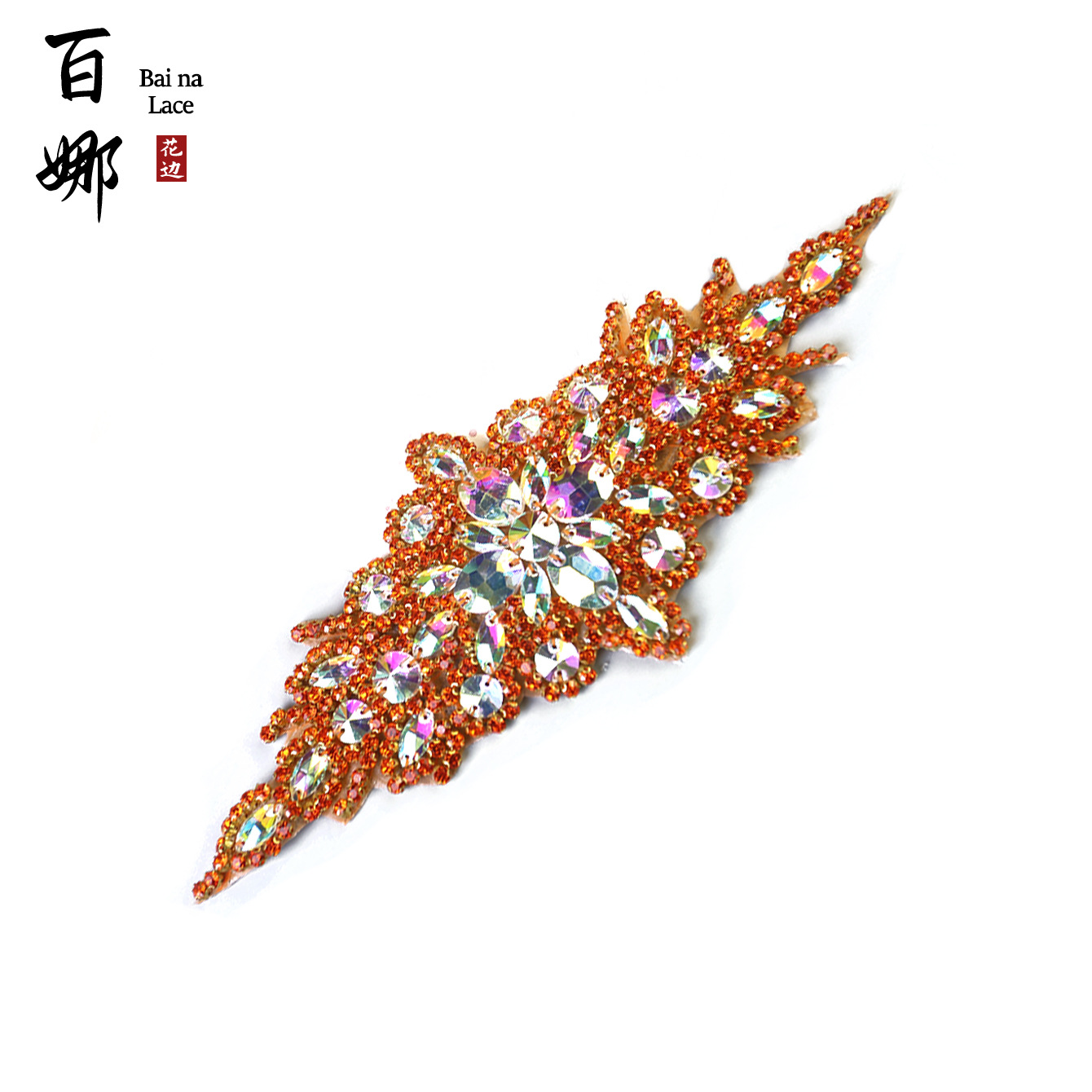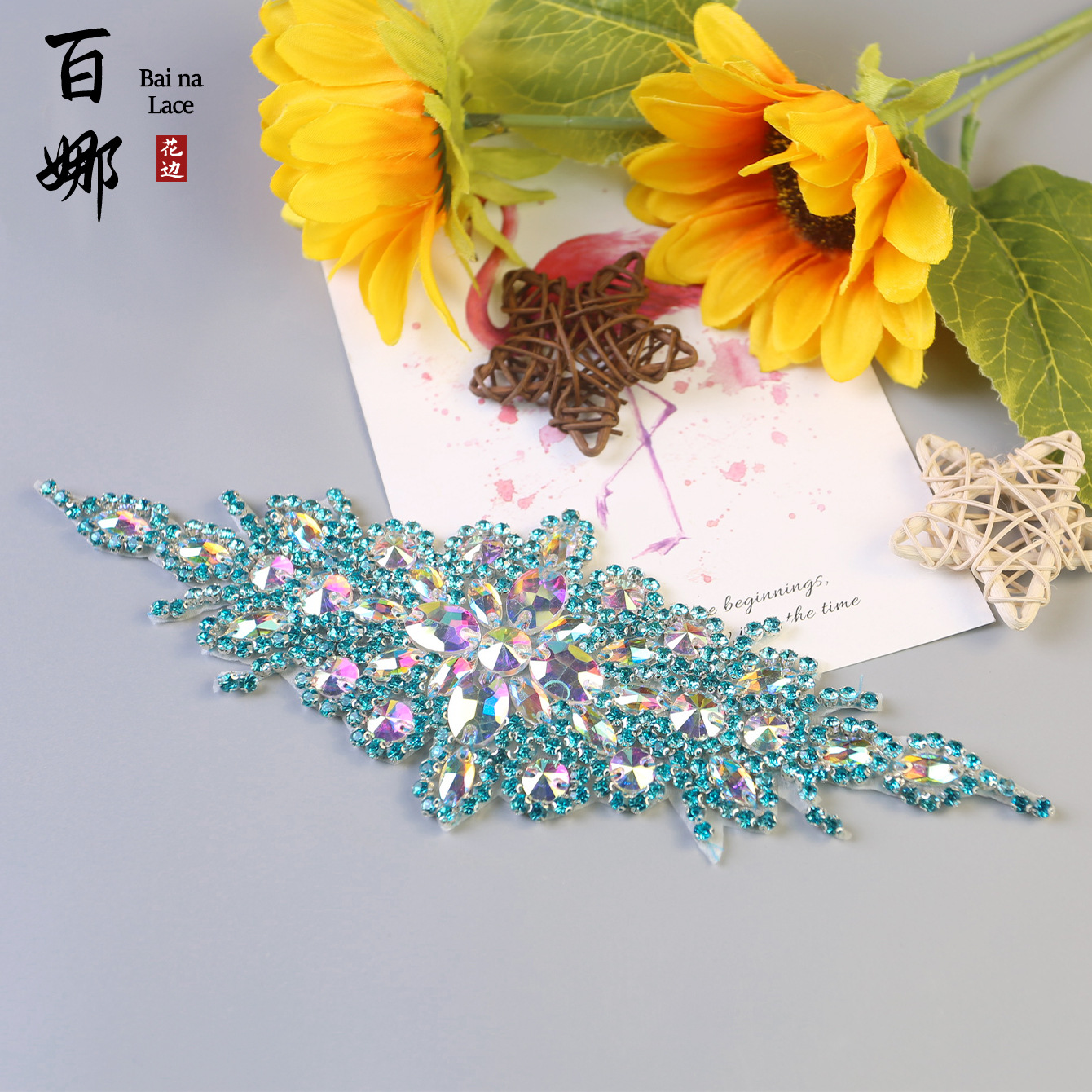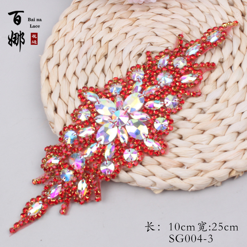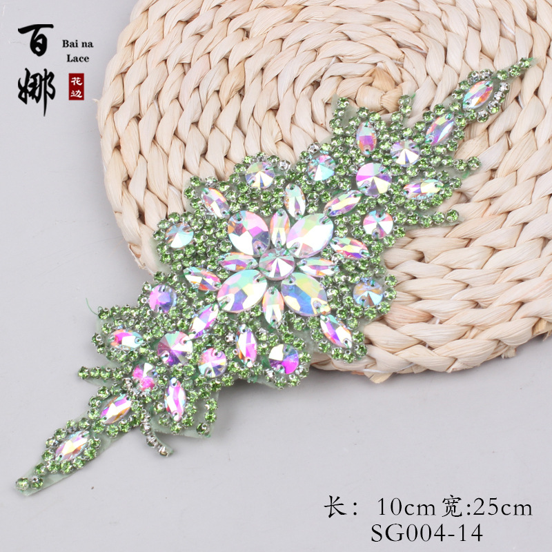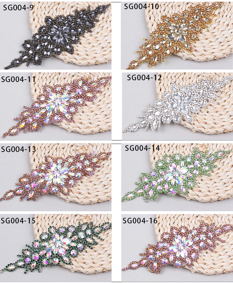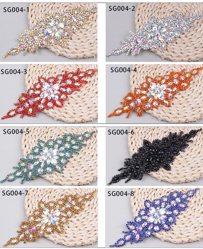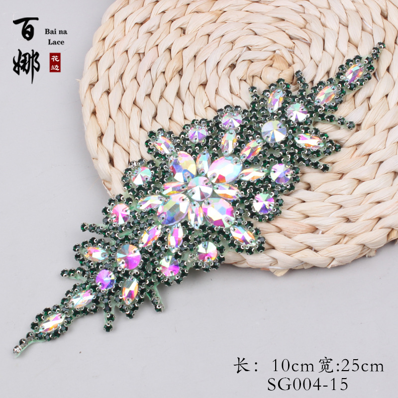 纺织辅料花朵 背胶贴花DIY镶钻连衣裙腰部珍珠头布贴重工钉珠花