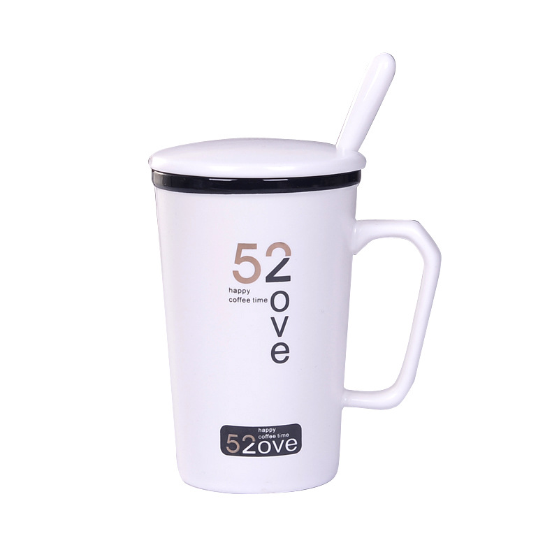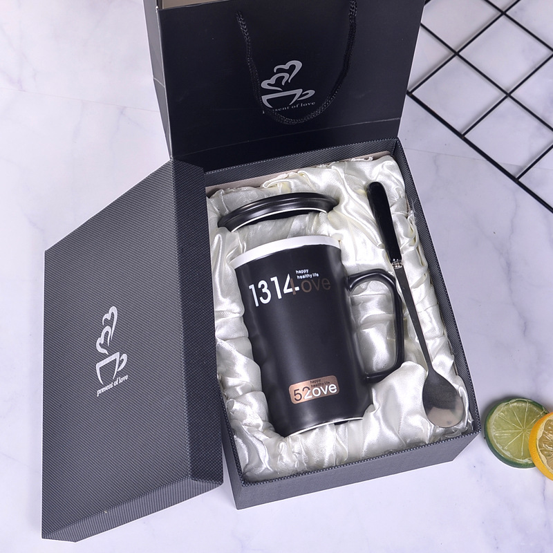 批发创意5201314情侣水杯带盖带勺黑白马克对杯广告礼品盒定LOGO