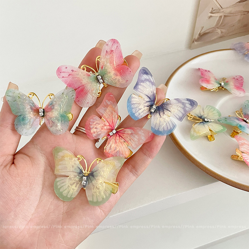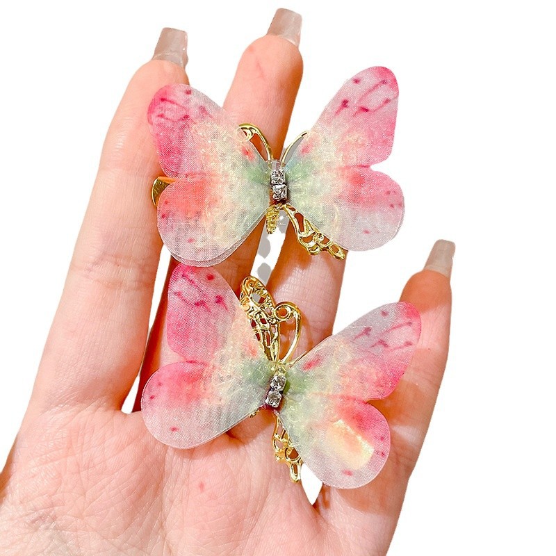 超仙蝴蝶结发夹会动的蝴蝶翅膀碎发夹儿童立体灵动发卡头饰不伤发