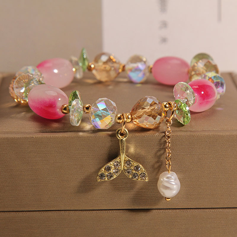 韩版可爱鱼尾儿童手链女网红闺蜜学生手环简约森系小女孩水晶手串