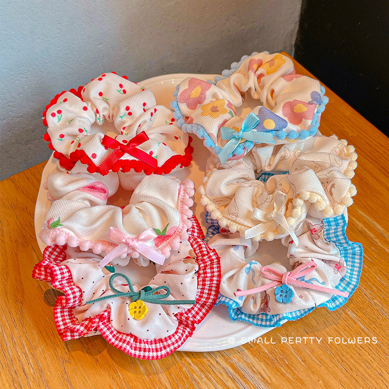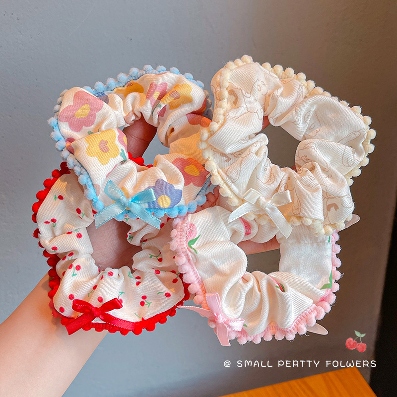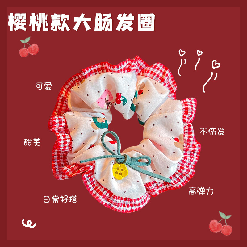 新款蕾丝边大肠圈女森系花朵儿童头饰春百搭头绳樱桃发圈发饰批发