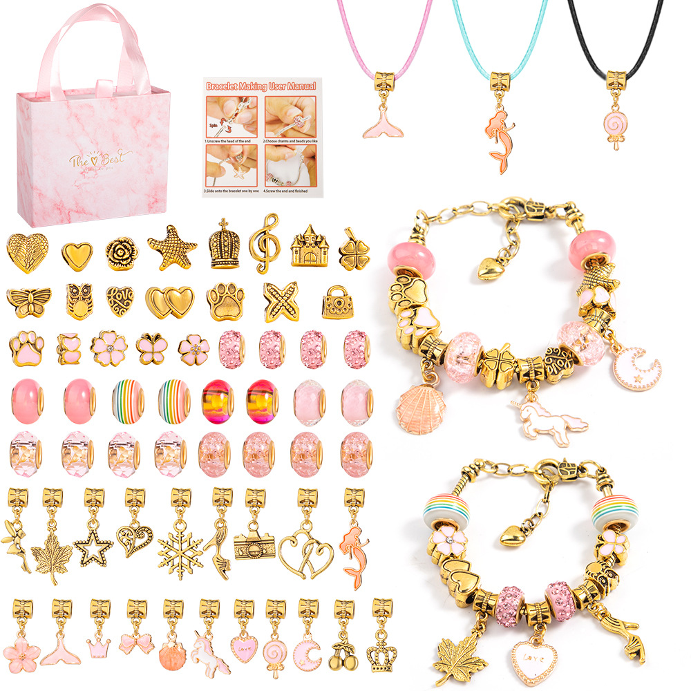 亚马逊热卖diy饰品配件儿童串珠手链女精美礼盒手串卡通粉色套装