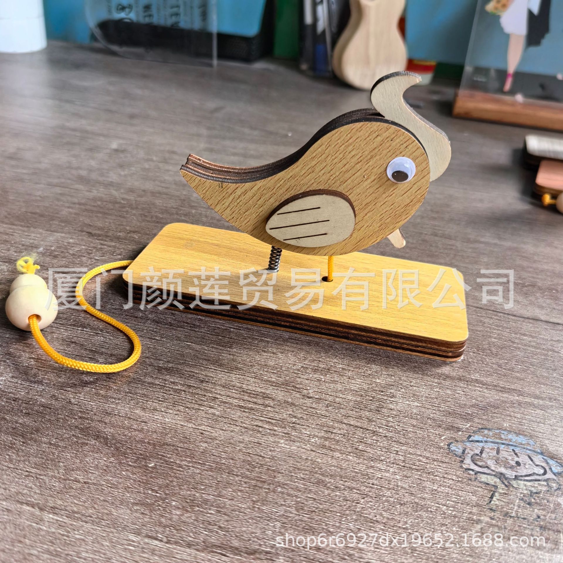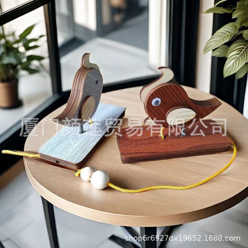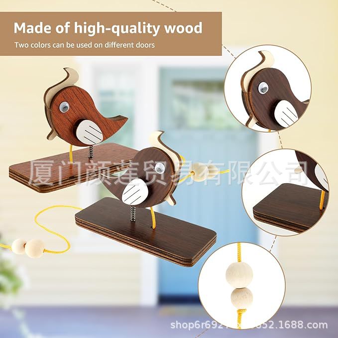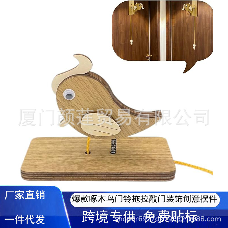 跨境爆款啄木鸟门铃民宿创意木质摆件拖拉敲门装饰挂件纯手工门铃