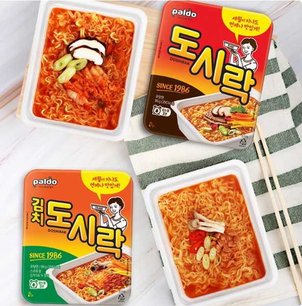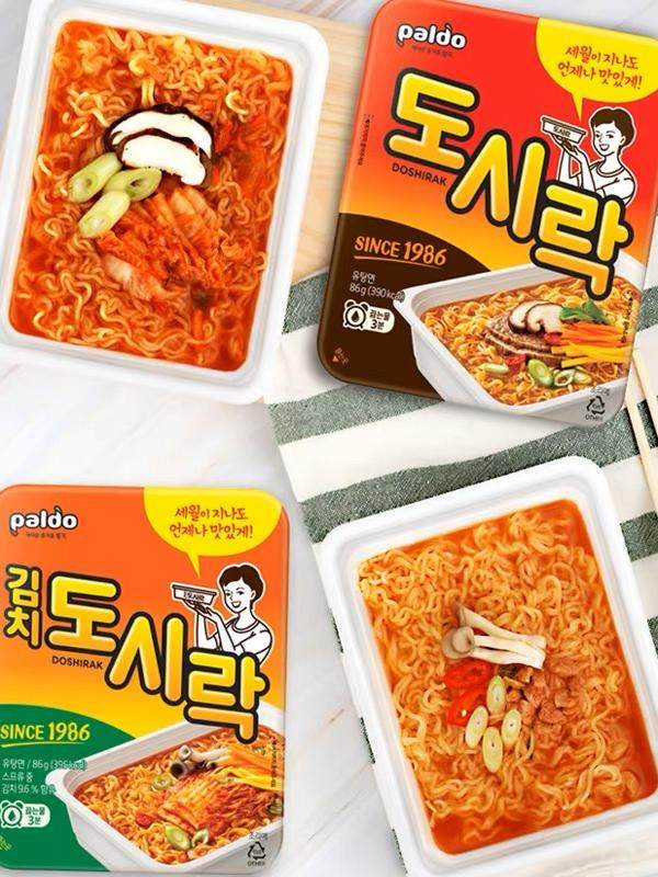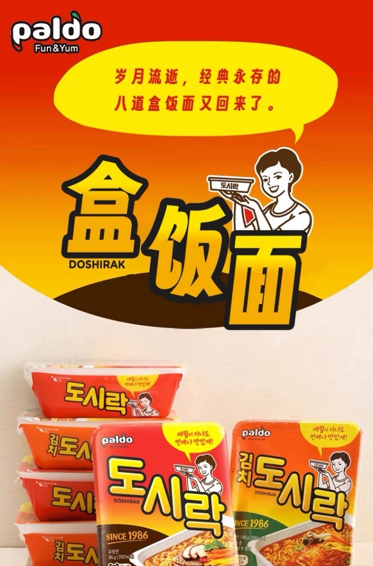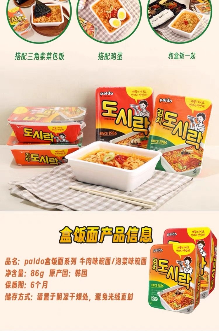 韩国paldo八道牛肉味辣白菜泡菜桶装韩式方便面速食泡面