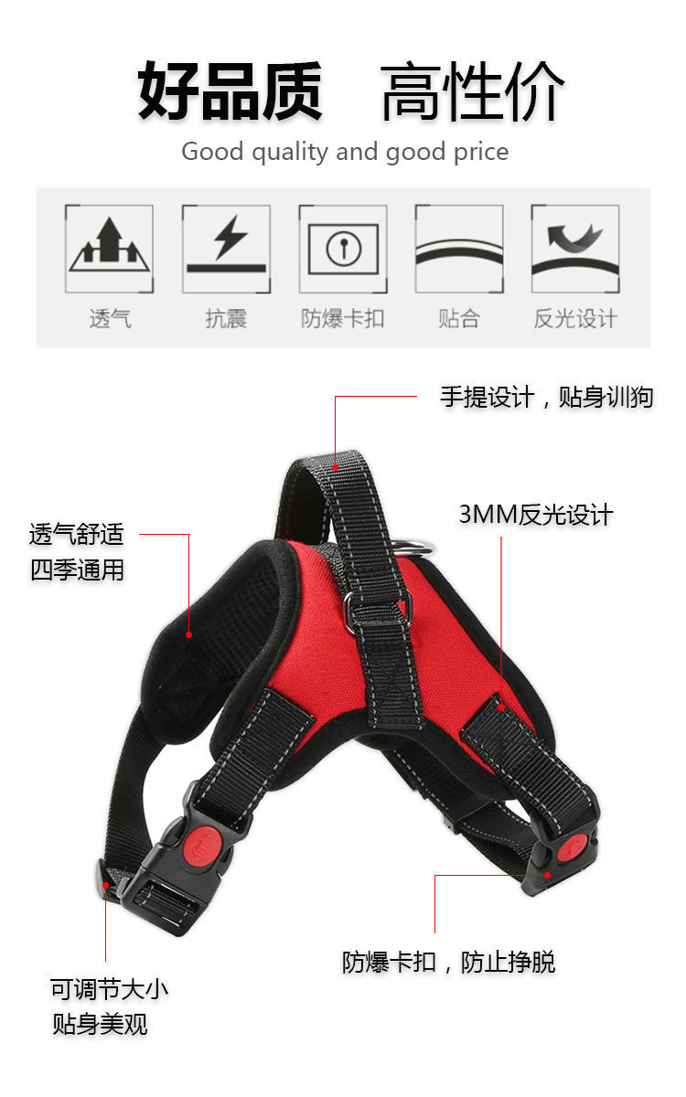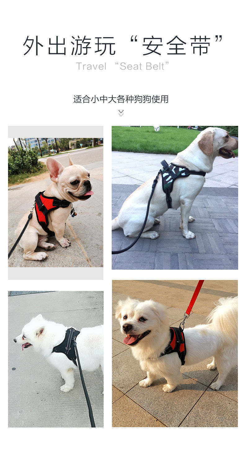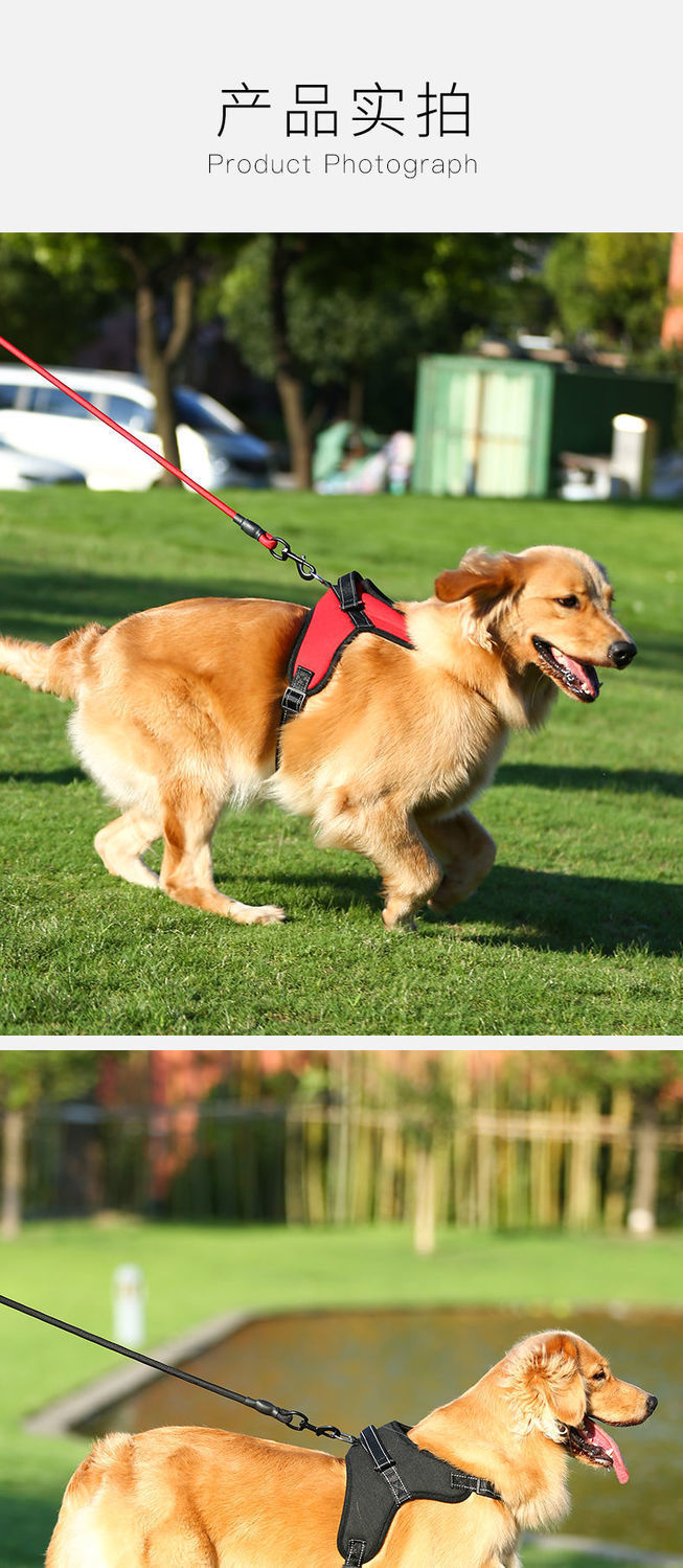 跨境狗狗牵引绳中大型犬背心式胸肩背带拉布拉多狗绳宠物通用批发