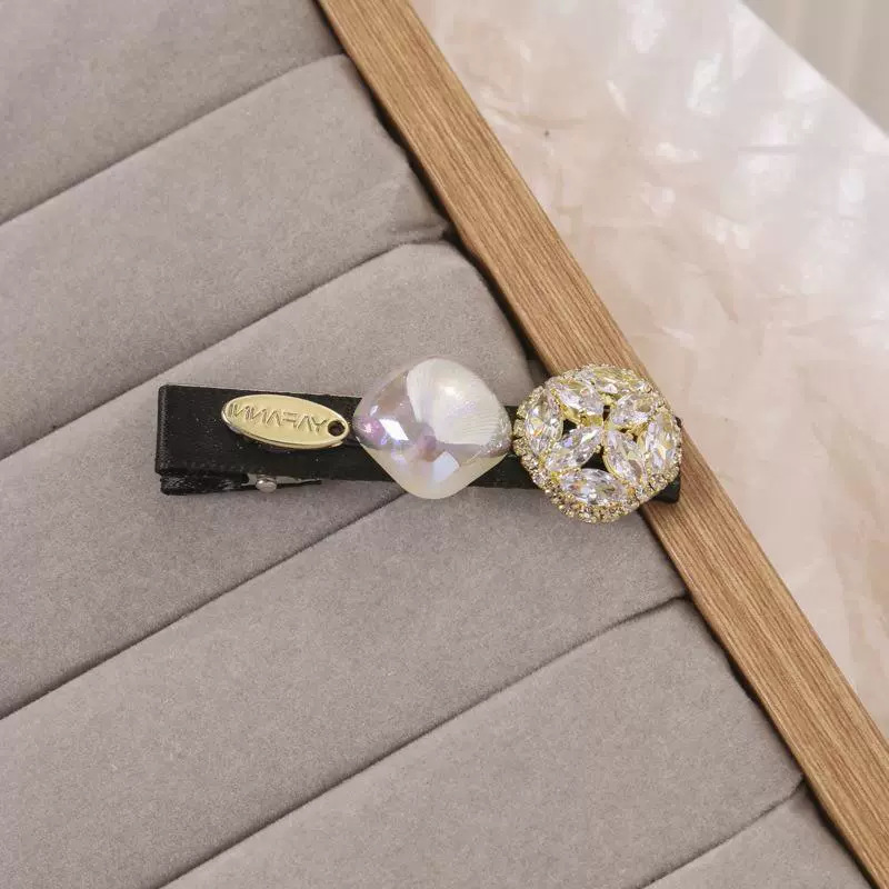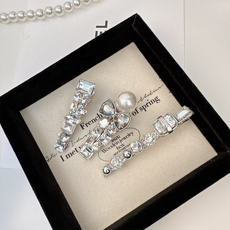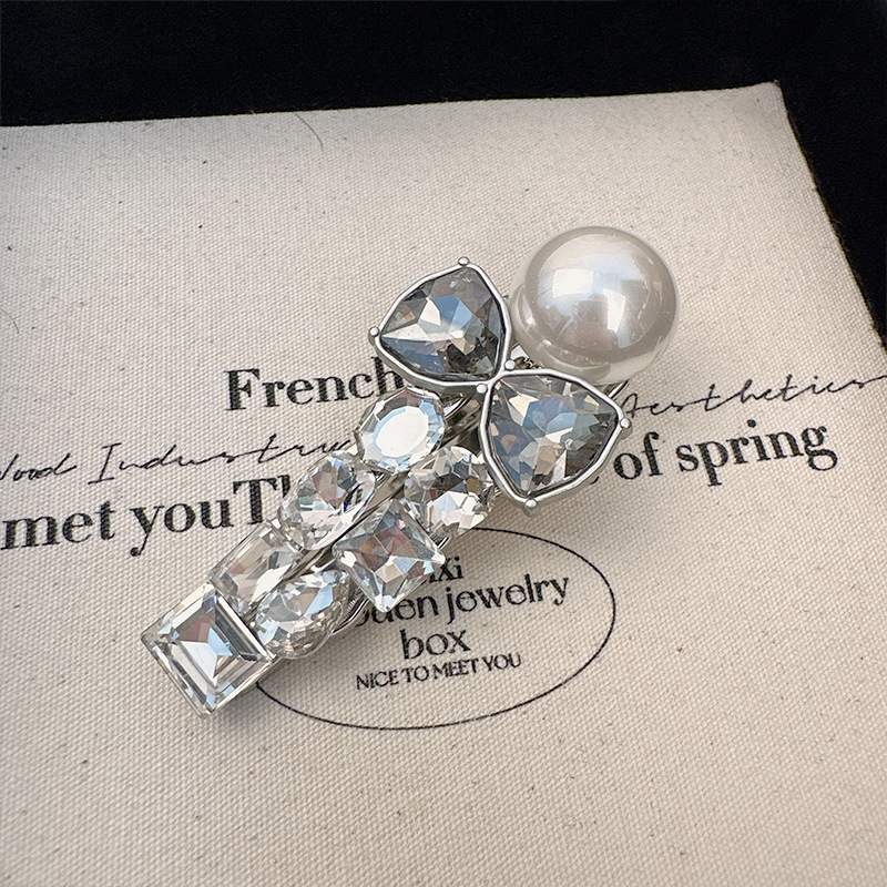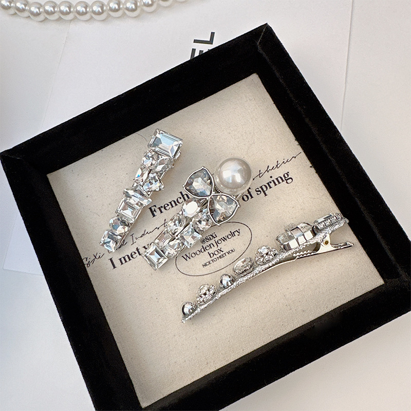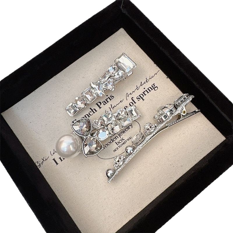 高级感闪亮大水钻珍珠蝴蝶结发夹鸭嘴夹子头饰侧边碎发刘海夹发卡