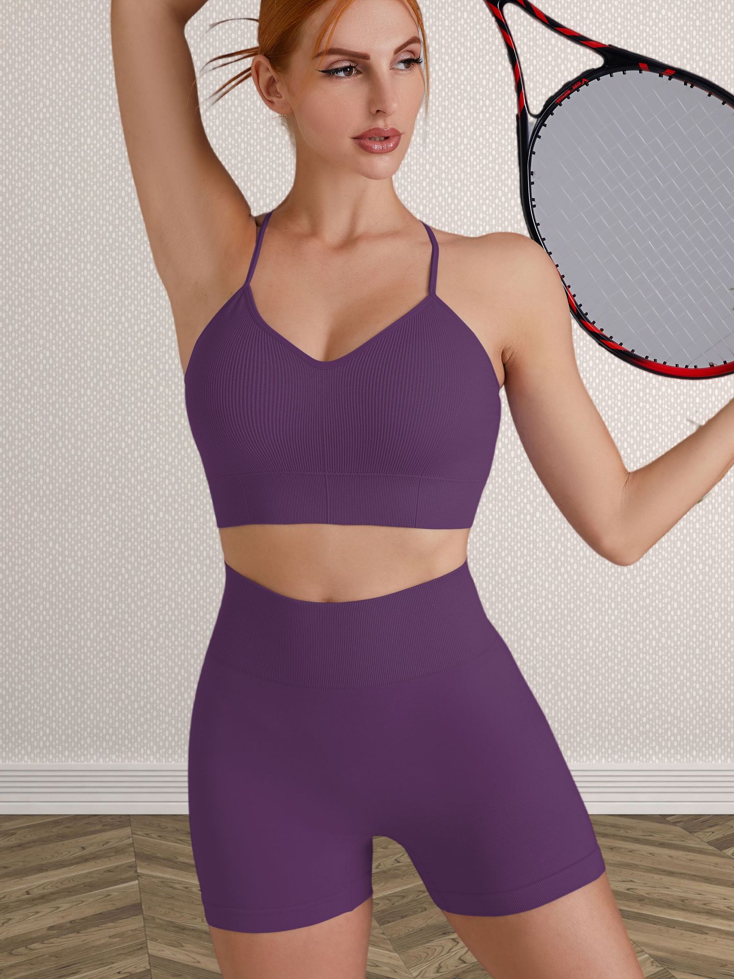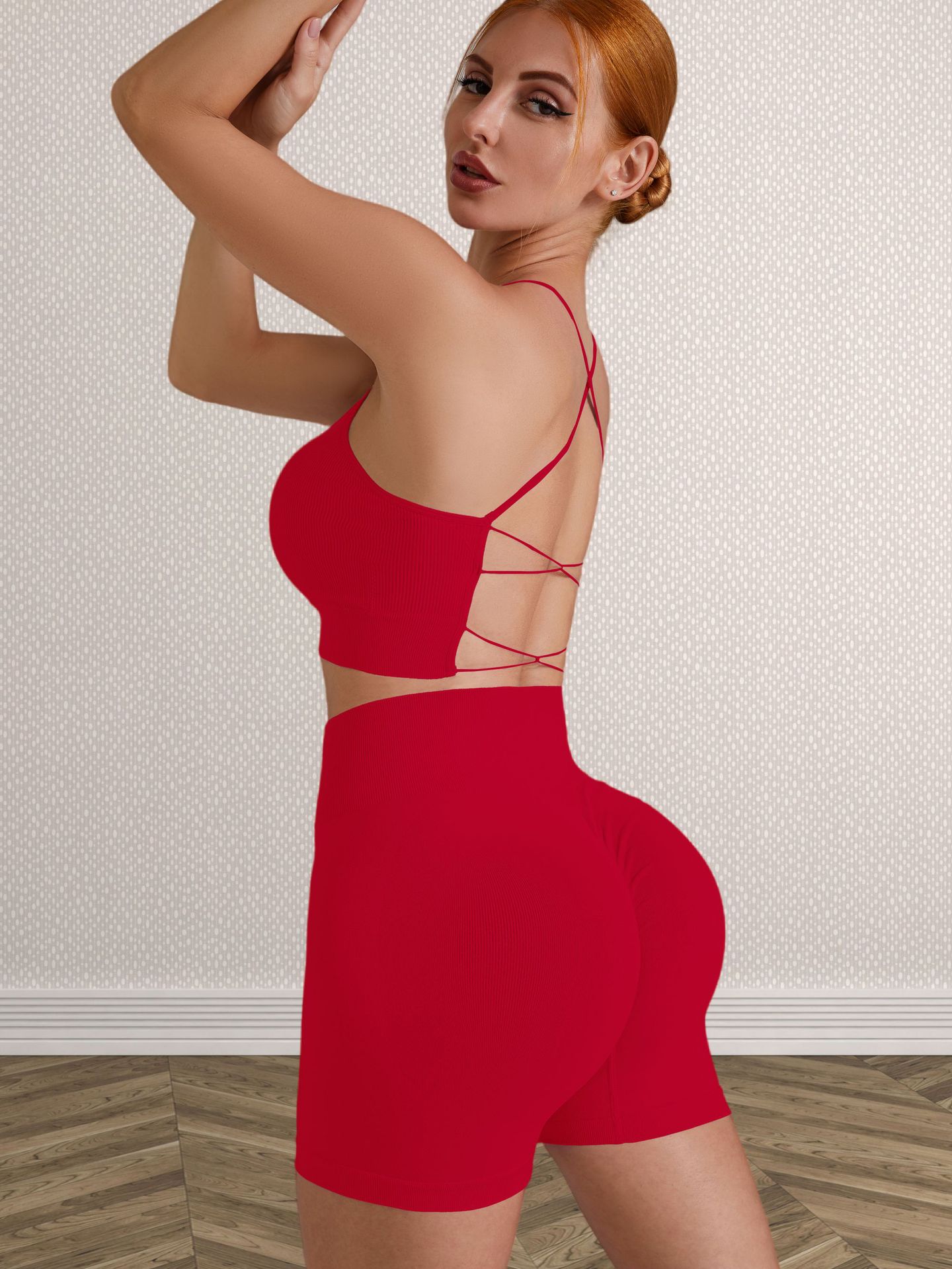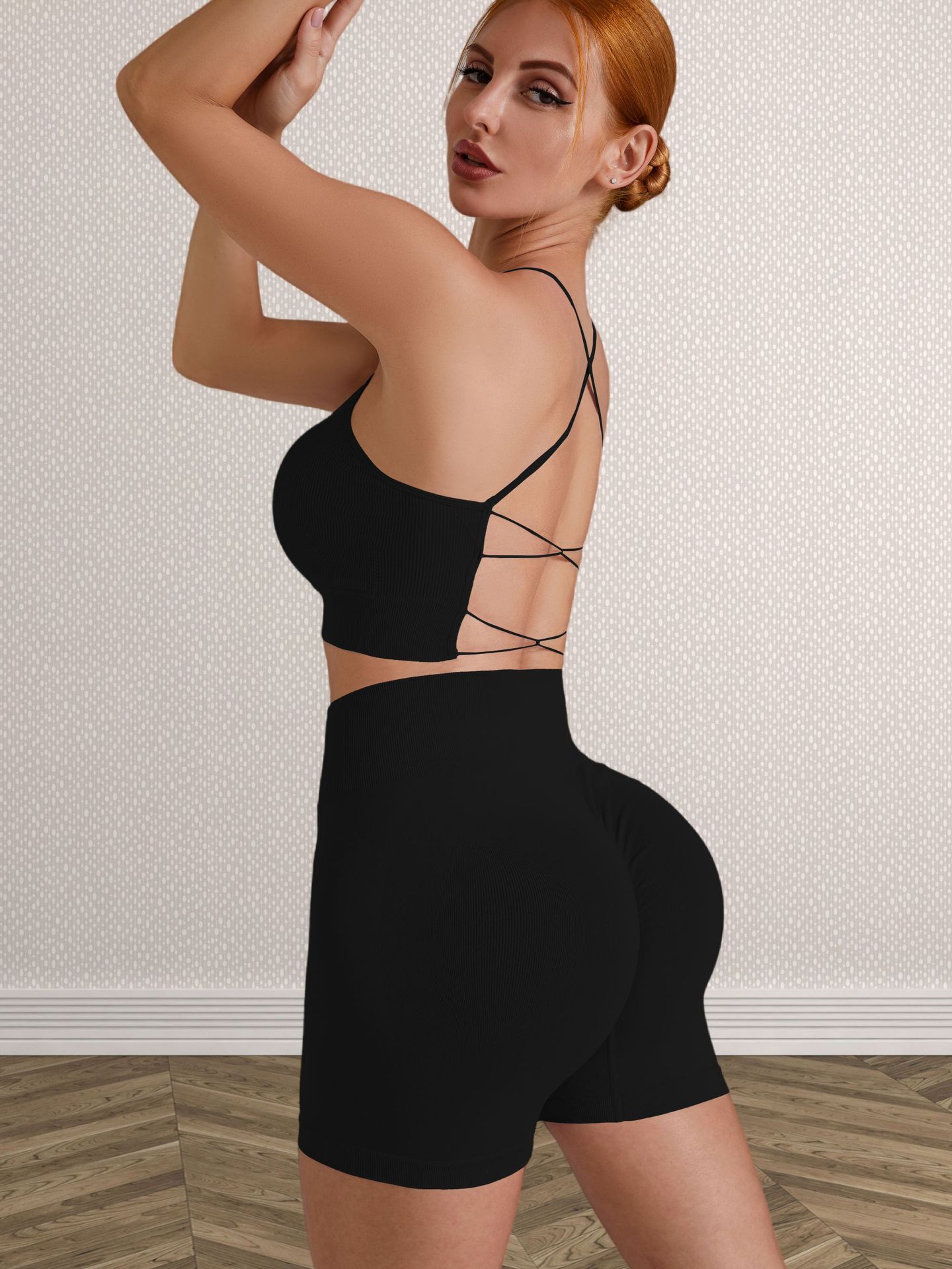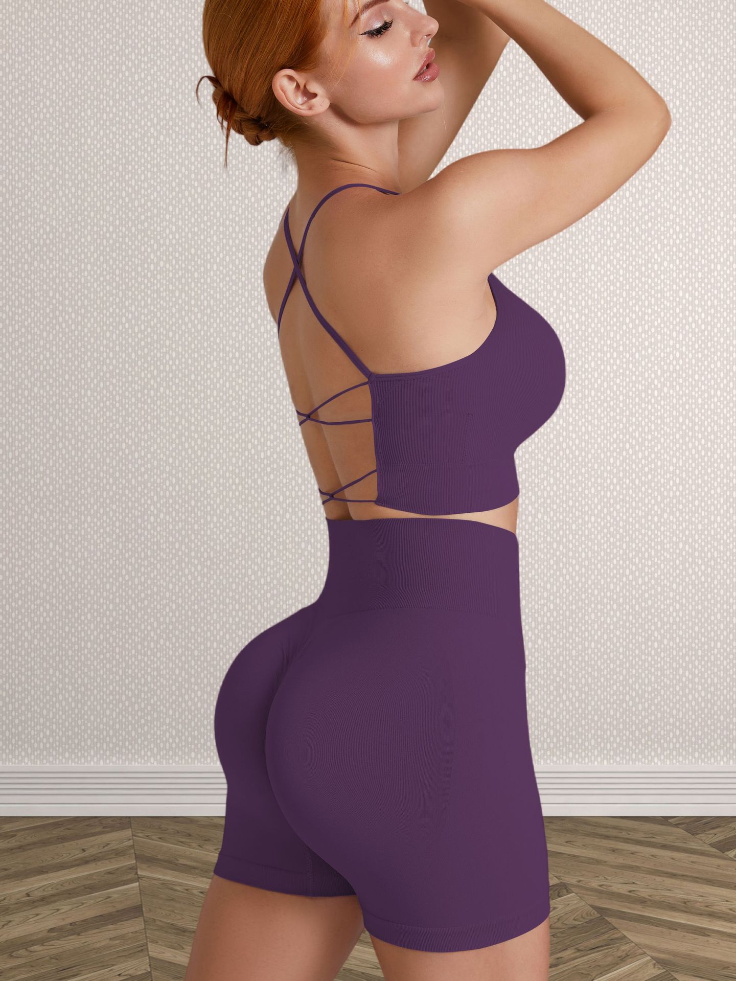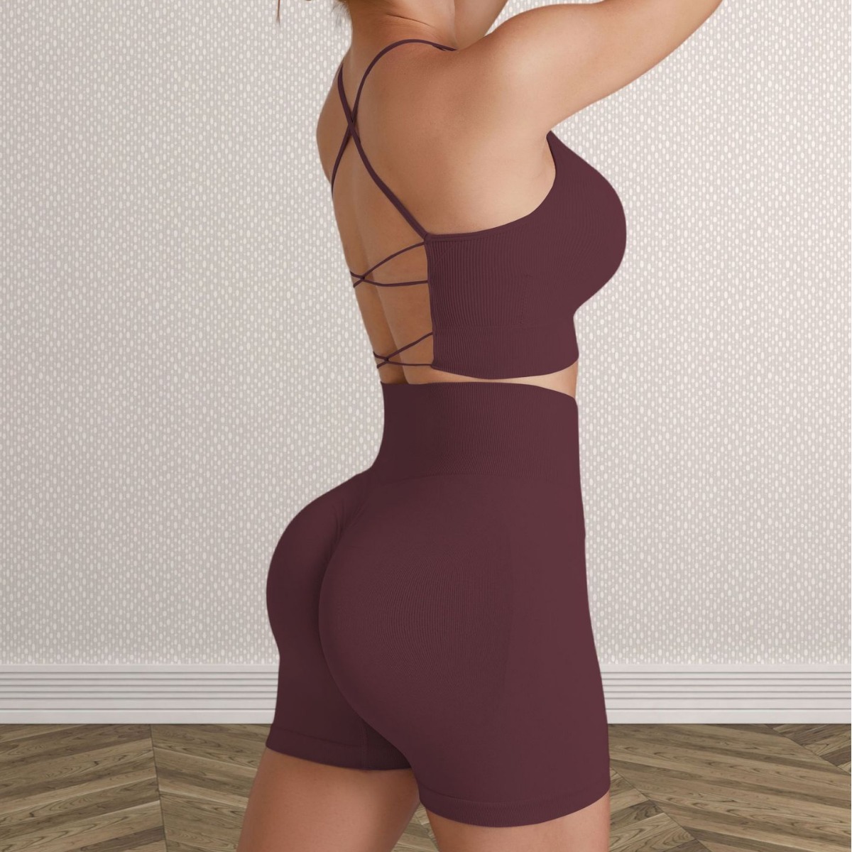 跨境欧美无缝纯色交叉美背运动文胸短裤瑜伽服套装女健身两件套