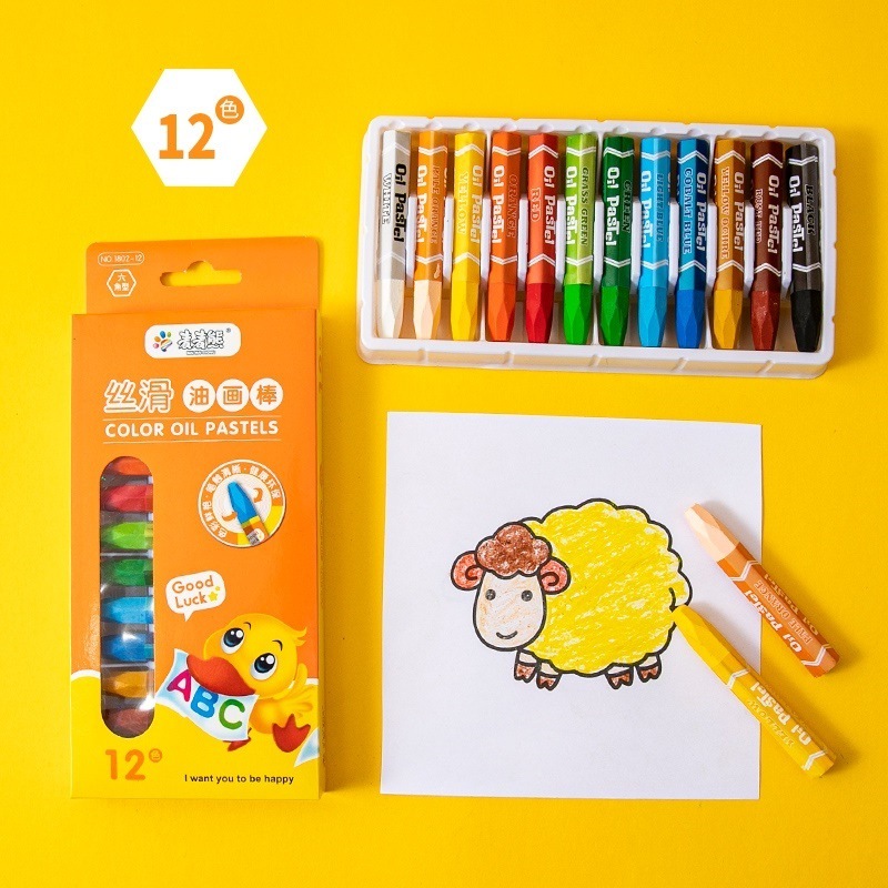 油画棒12色套装儿童绘画涂色蜡笔幼儿园涂鸦画笔学生美术用品批发