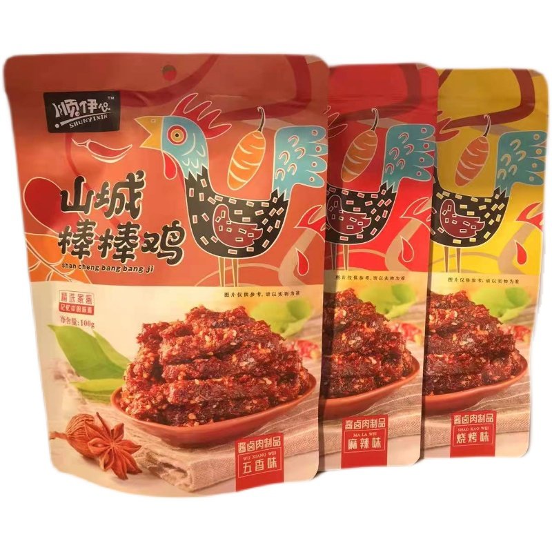 重庆口味顺伊心山城棒棒鸡麻辣鲜香烧烤五香鸡肉网红小零食品