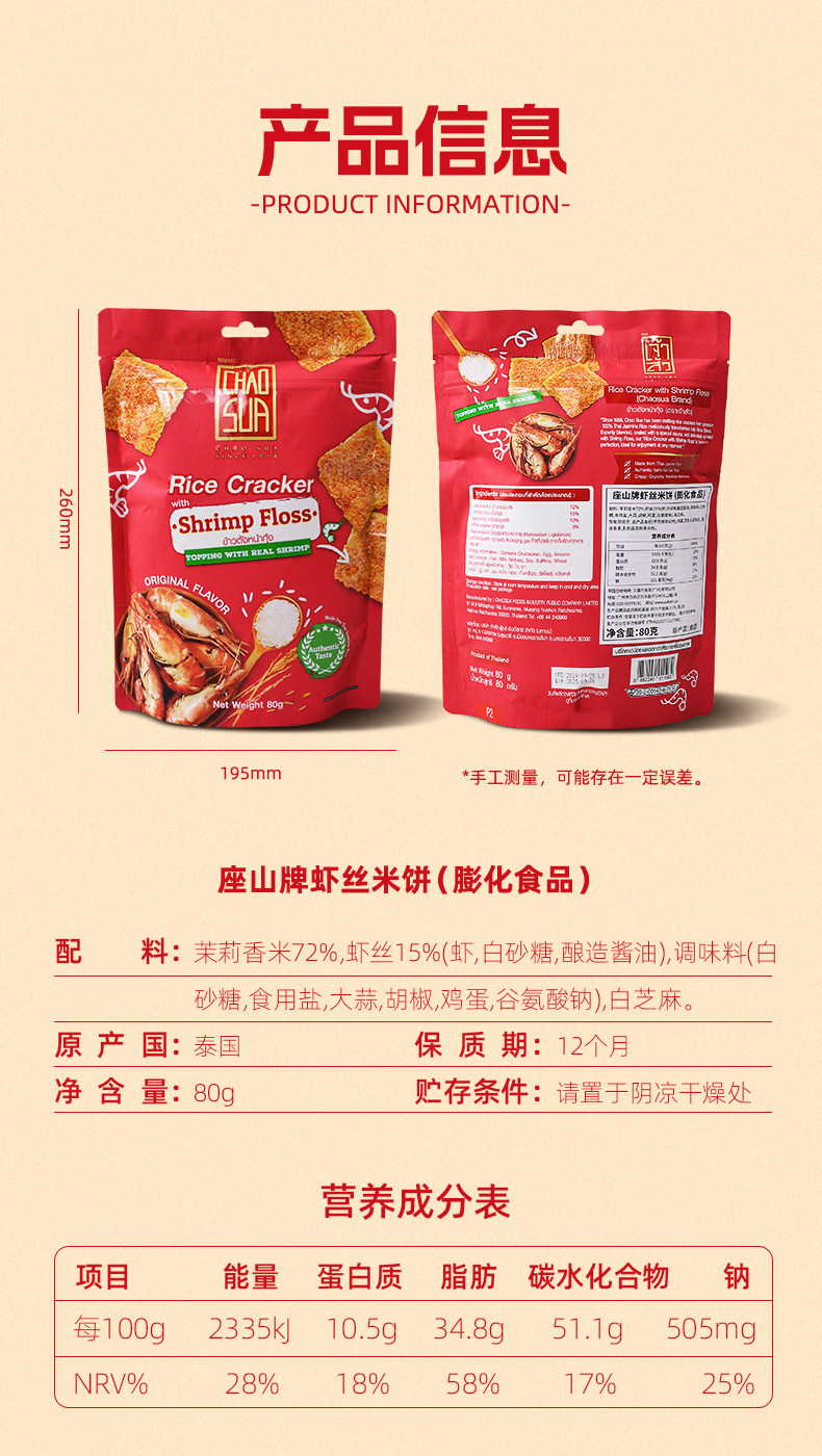 座山虾丝米饼80g泰国进口虾松脆米饼酥脆美味膨化食品休闲零食