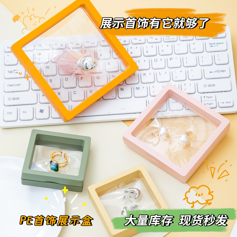 首饰收纳盒简约精致透明防氧化pe膜悬浮盒耳钉戒指手链项链饰品盒