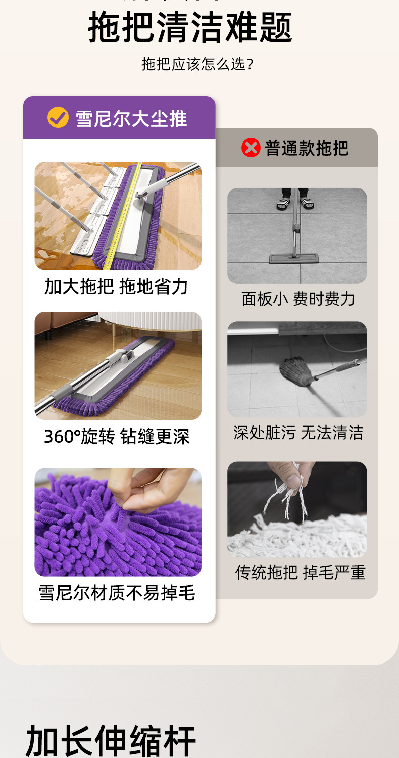 平板拖把2024新款大号商用酒店雪尼尔拖把家用一拖拖布净地拖神器
