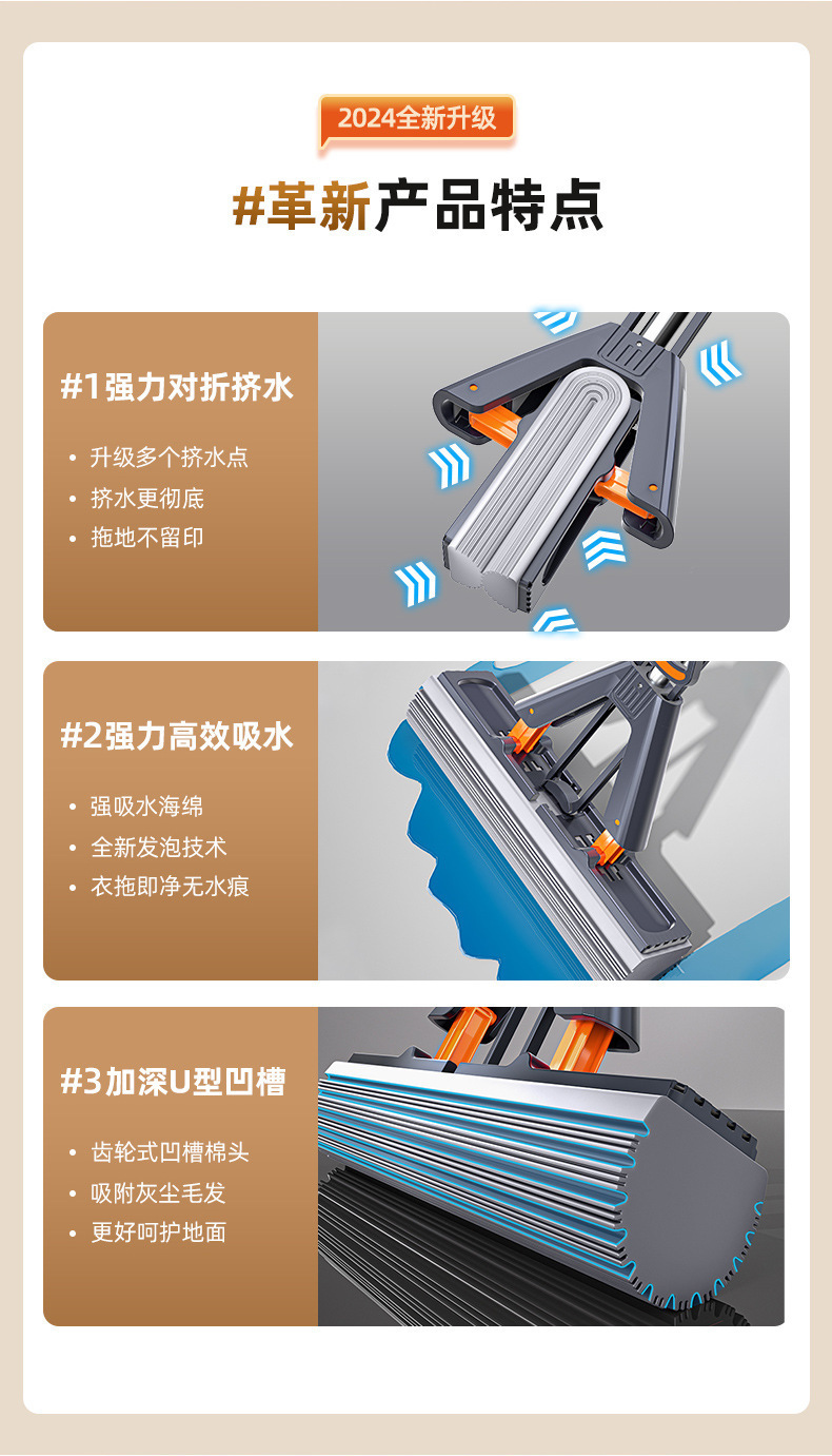 2025新款海绵拖把胶棉拖把家用懒人免手洗拖把对折式家用吸水拖把