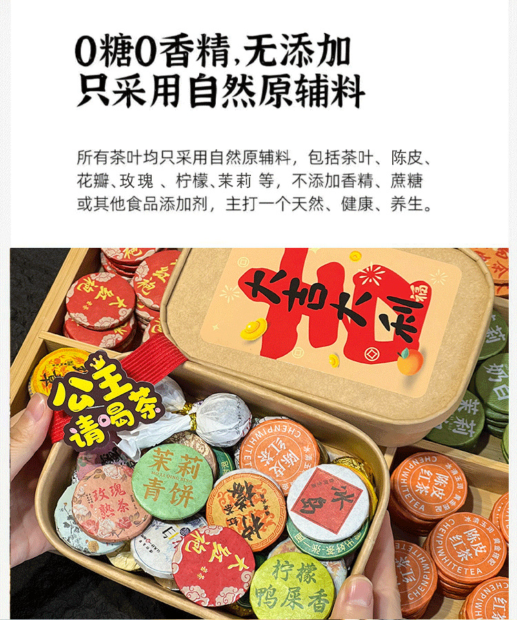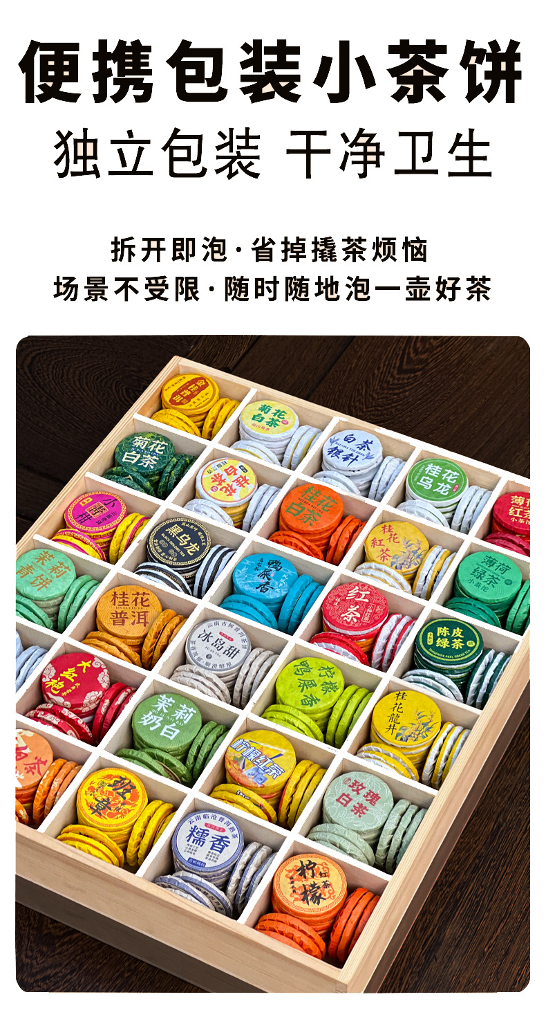 | 21 kinds of small tea cake + (wooden present box) wind and water(21种小茶饼+(木质礼盒)风生水起) | USD $5.47 | 99991 piece available |
