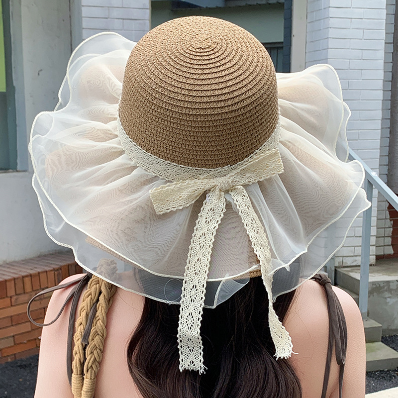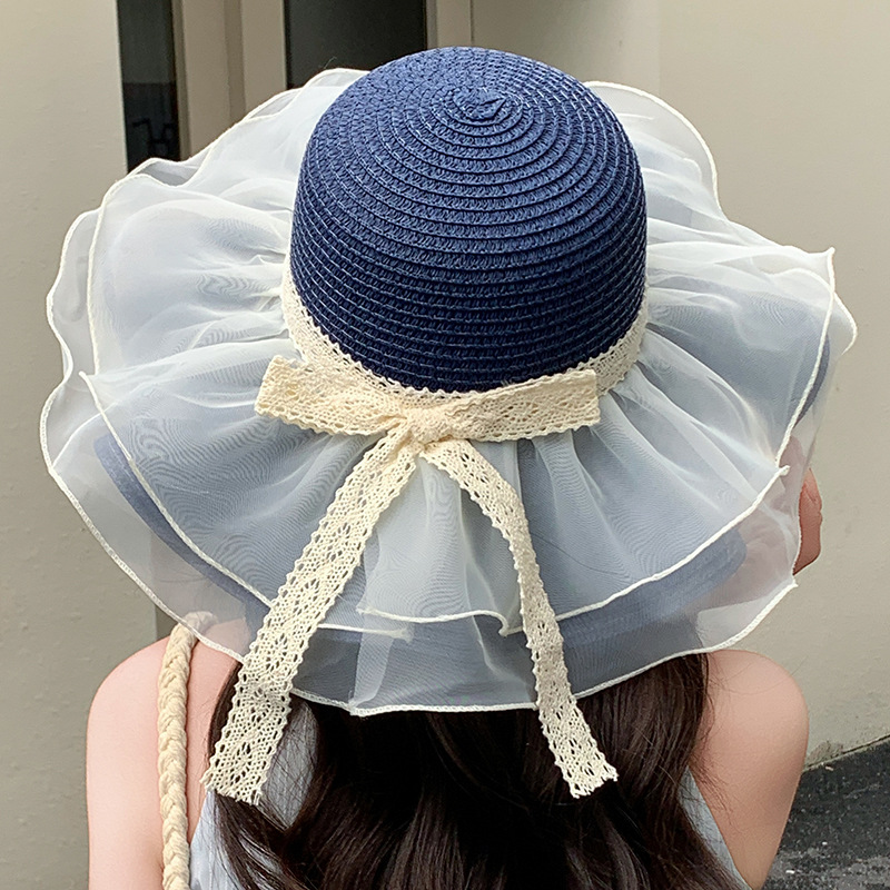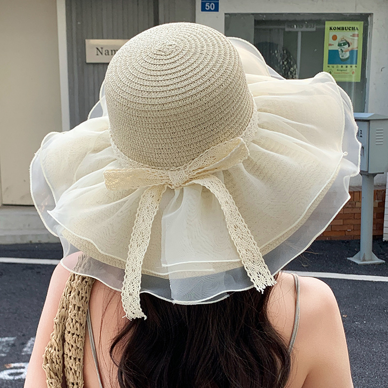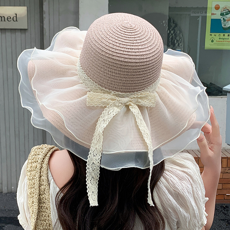 夏天蝴蝶结遮阳帽女 海边沙滩度假防晒帽户外大檐太阳帽甜美草帽