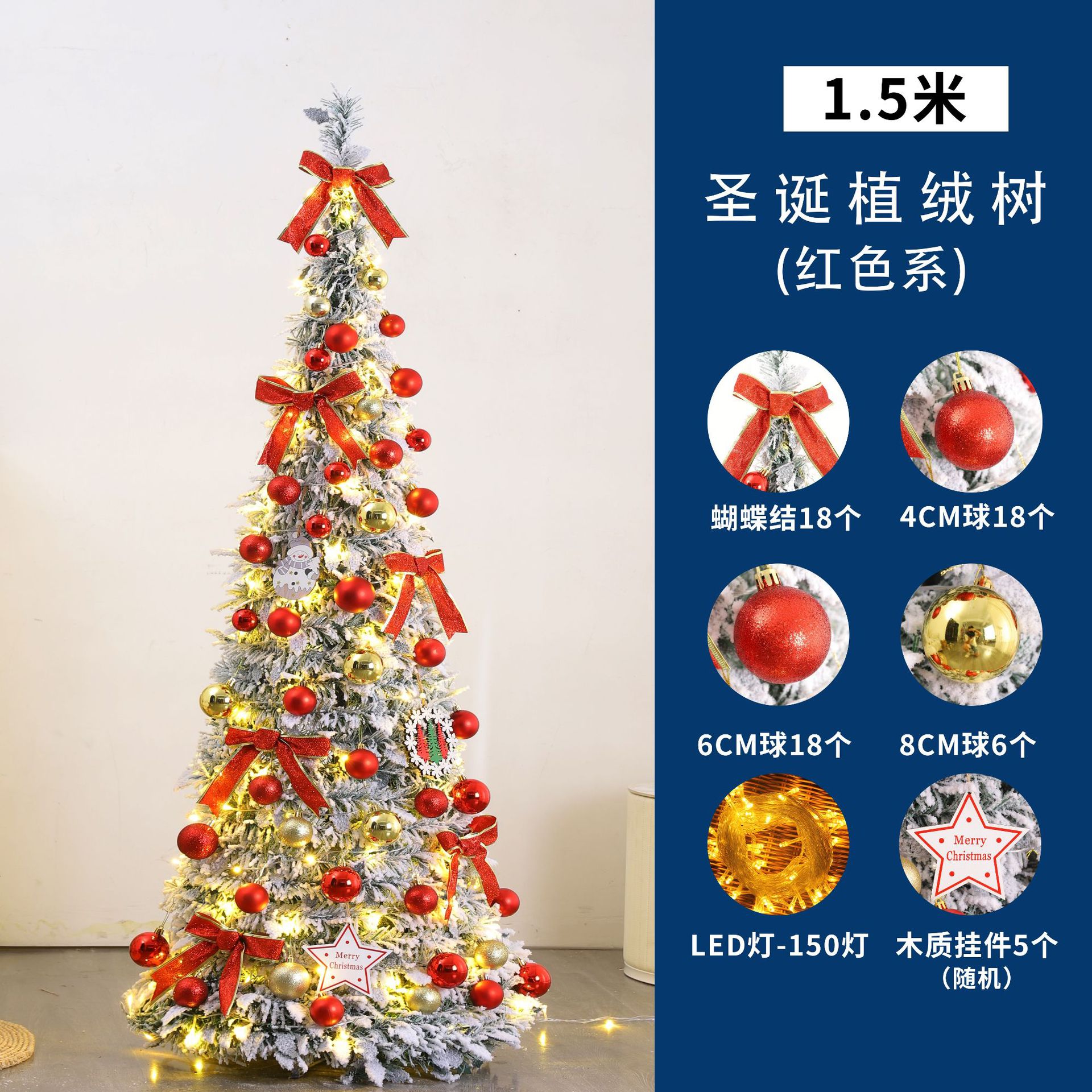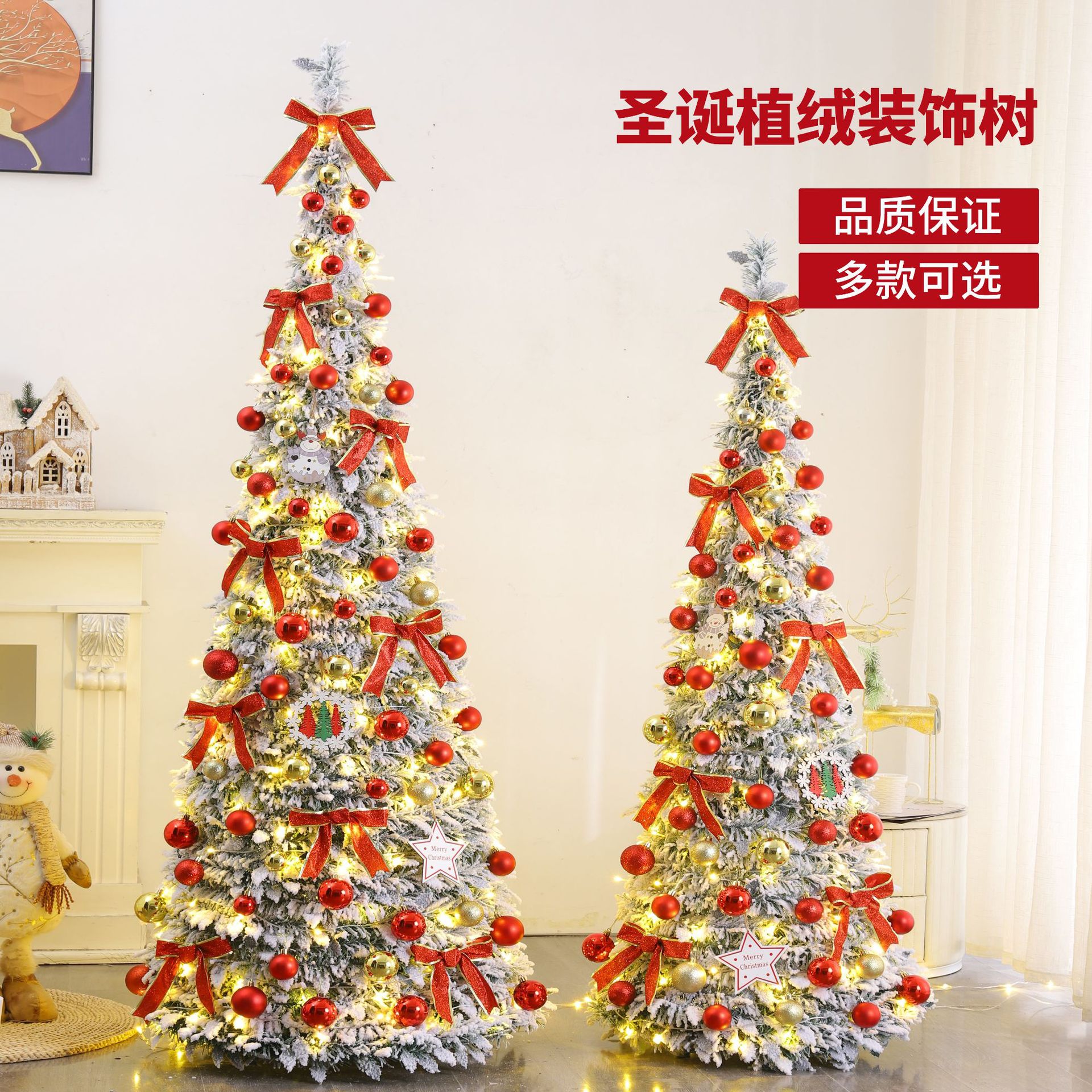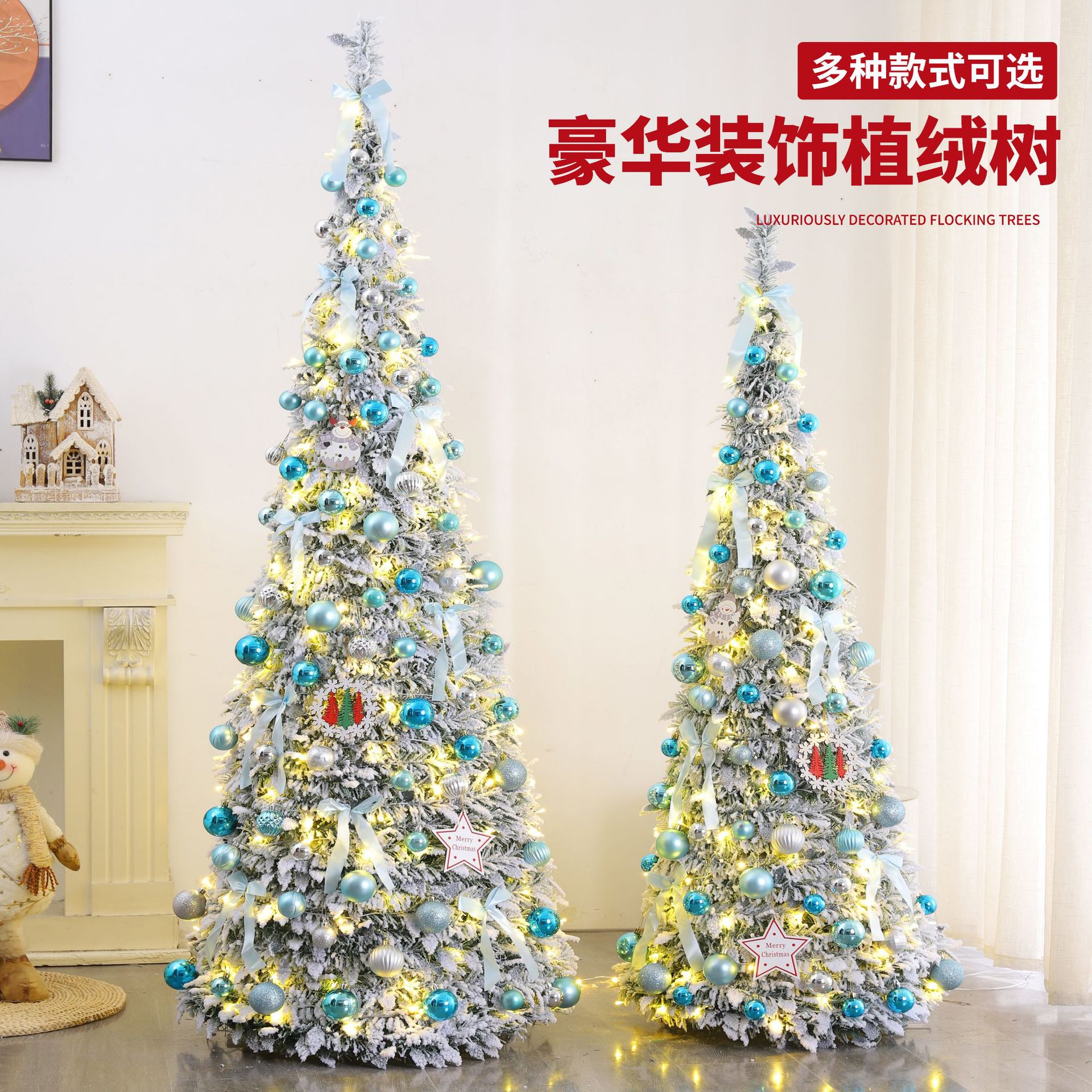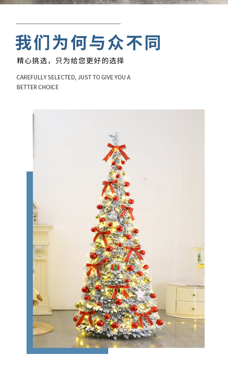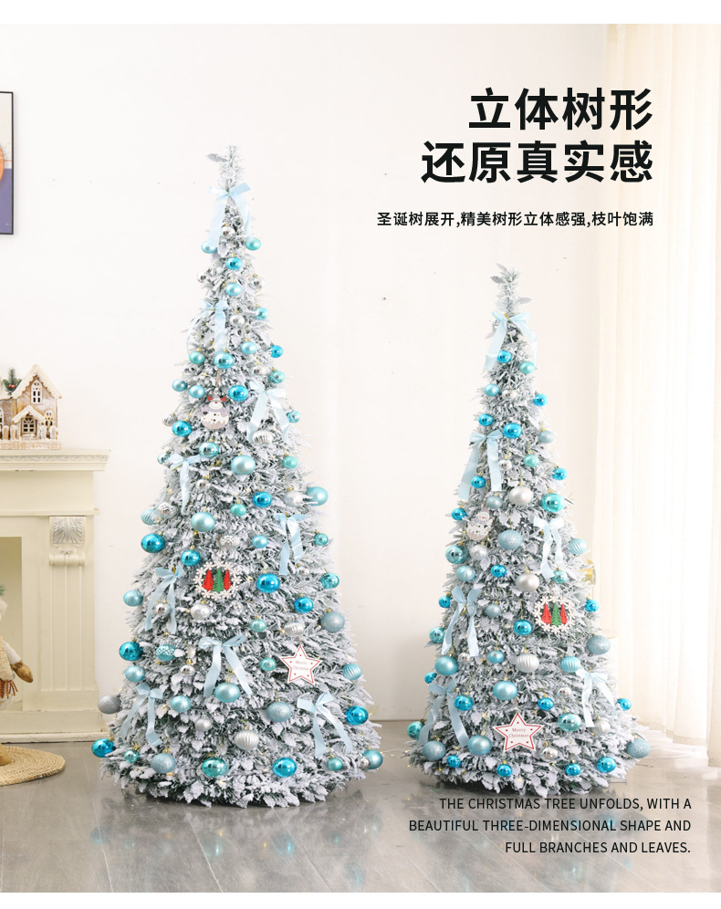 跨境热销圣诞节折叠圣诞树植绒落雪仿真圣诞树伸缩圣诞树装饰套餐