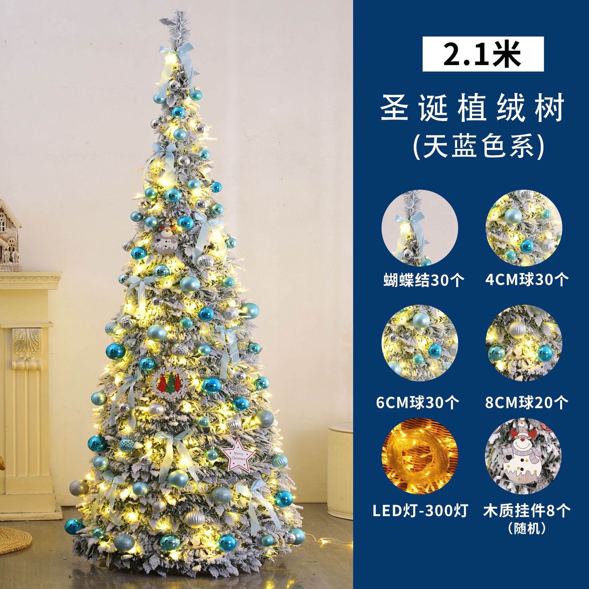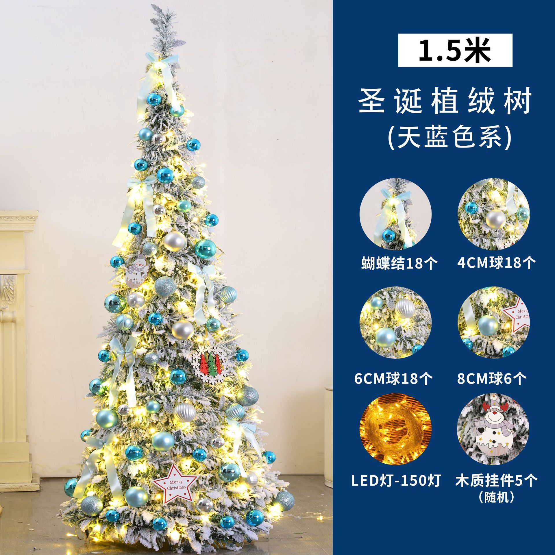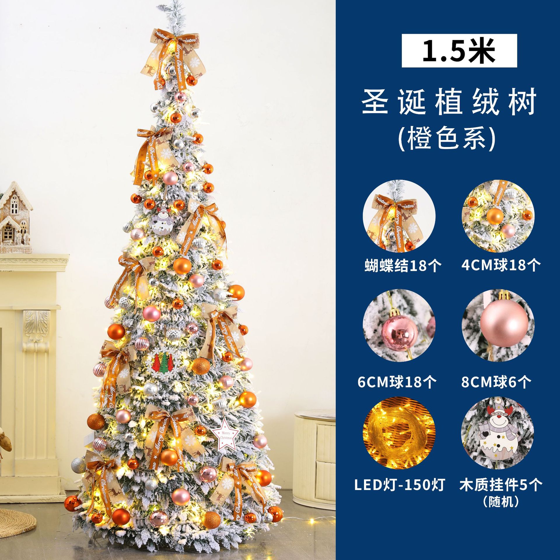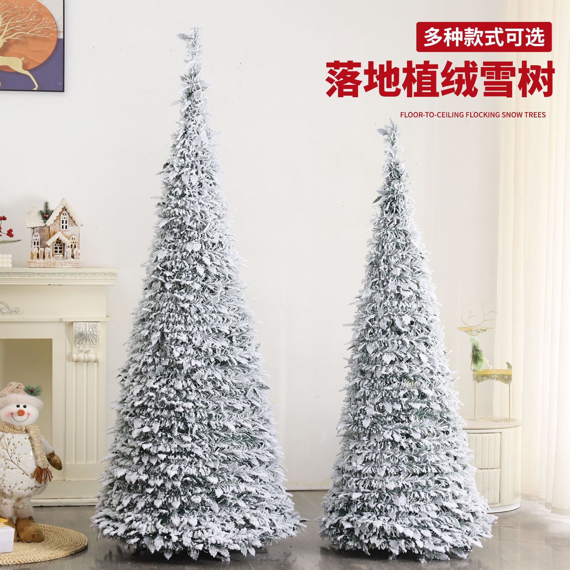 跨境热销圣诞节折叠圣诞树植绒落雪仿真圣诞树伸缩圣诞树装饰套餐