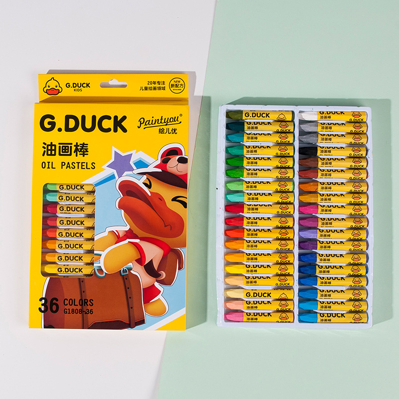 小黄鸭36色油画棒美术蜡笔学生绘画用品diy涂鸦套油画棒厂家批发