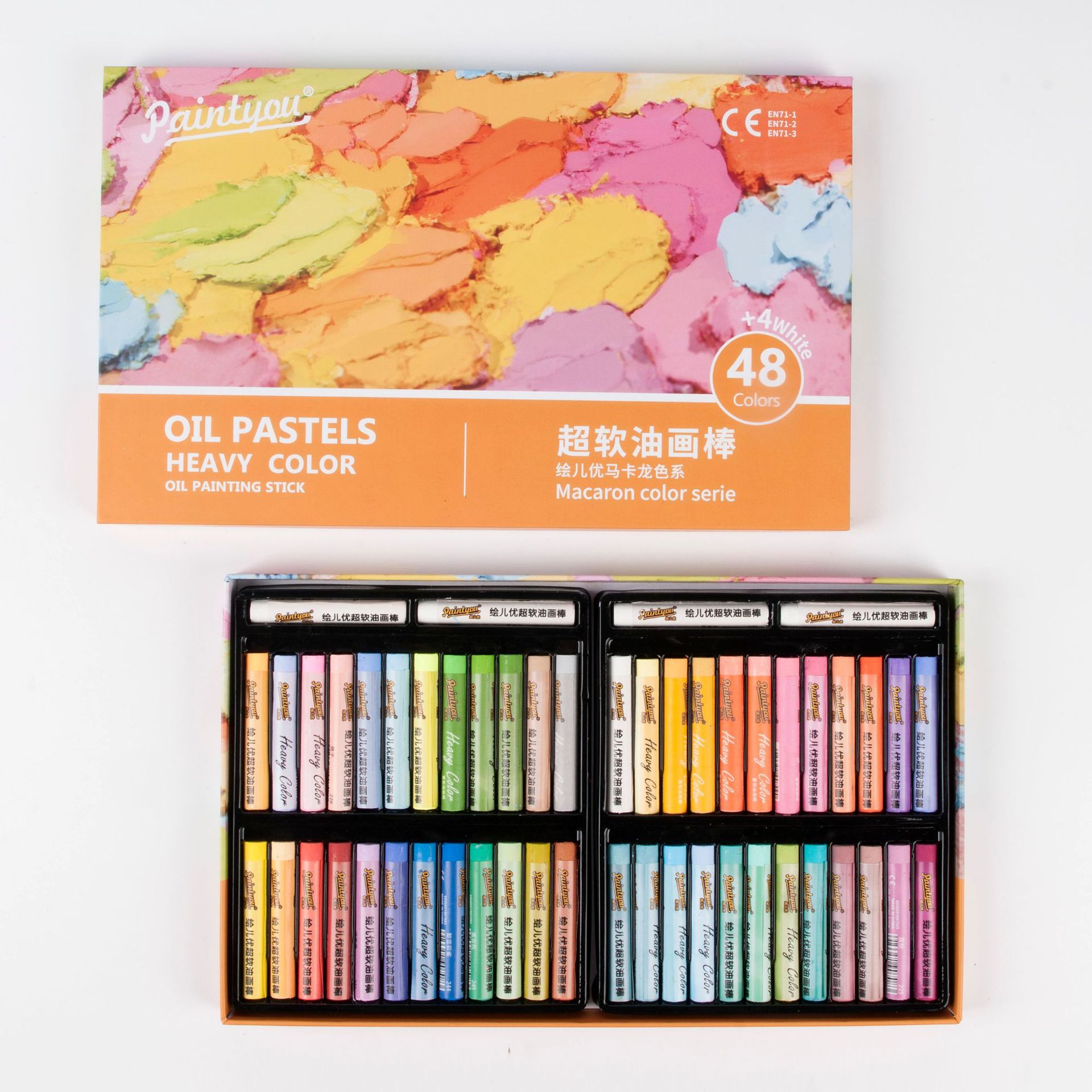 重彩超软油画棒48色软性抹彩棒蜡笔涂鸦炫彩棒叠色美术机构绘画笔