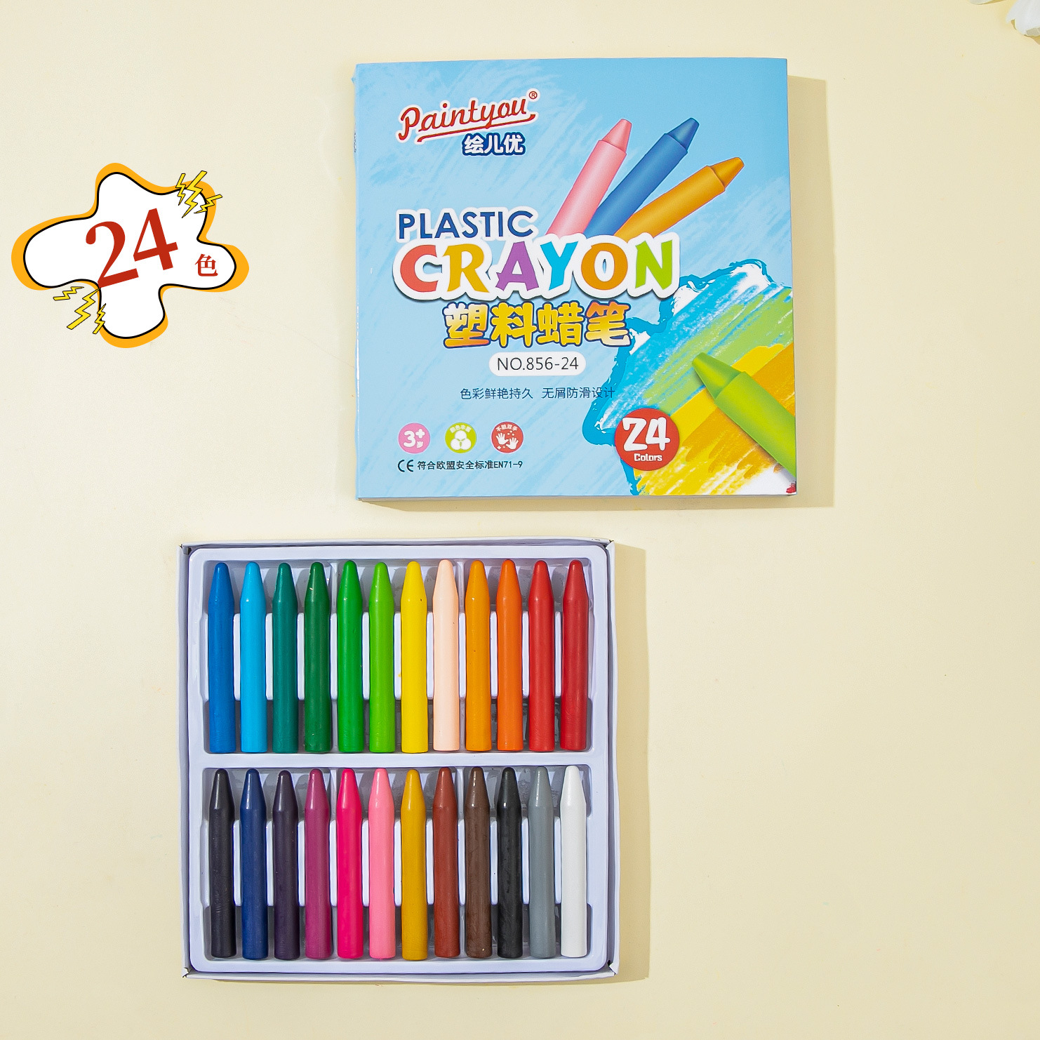 儿童蜡笔彩色不脏手可水洗圆柱绘画笔宝宝涂鸦24色油画棒塑料蜡笔