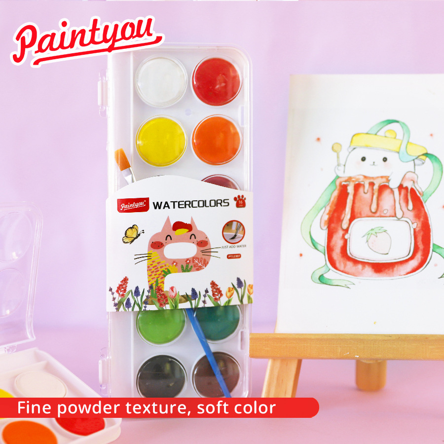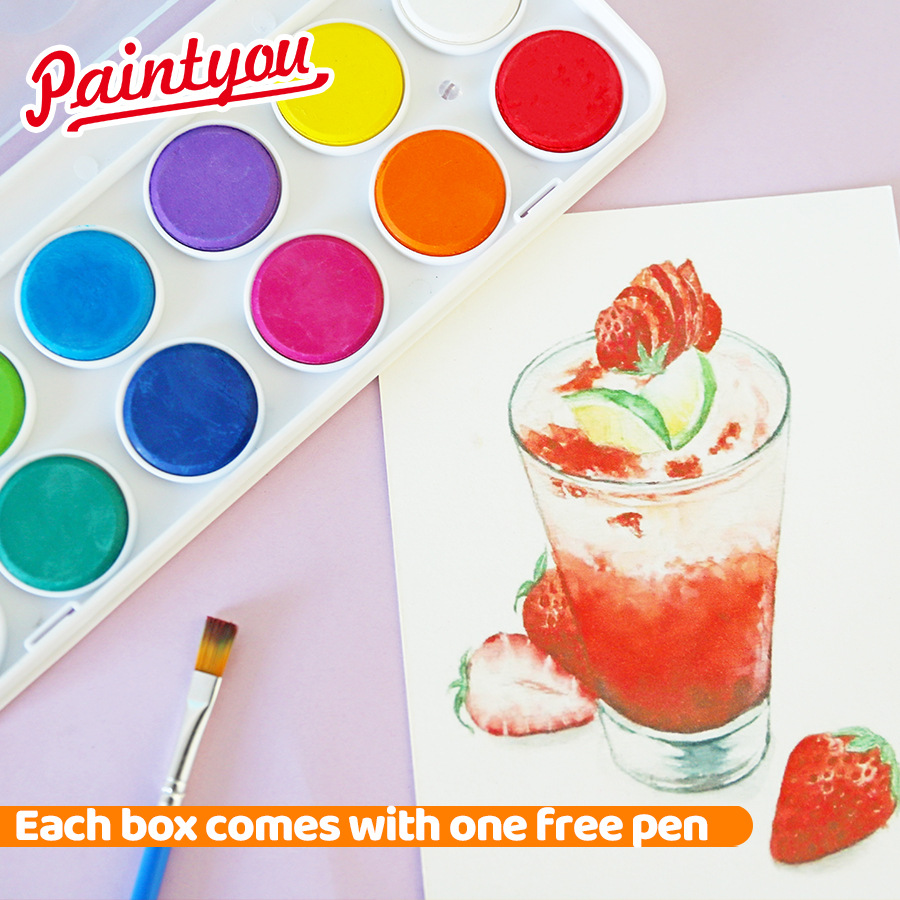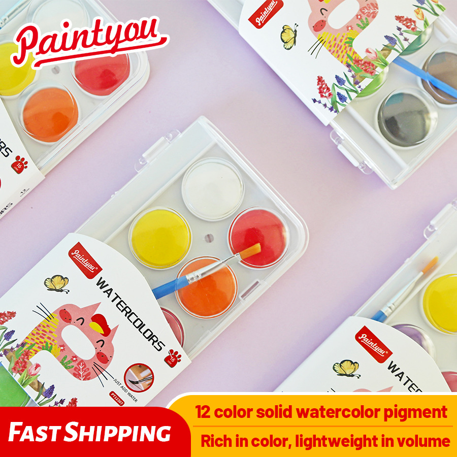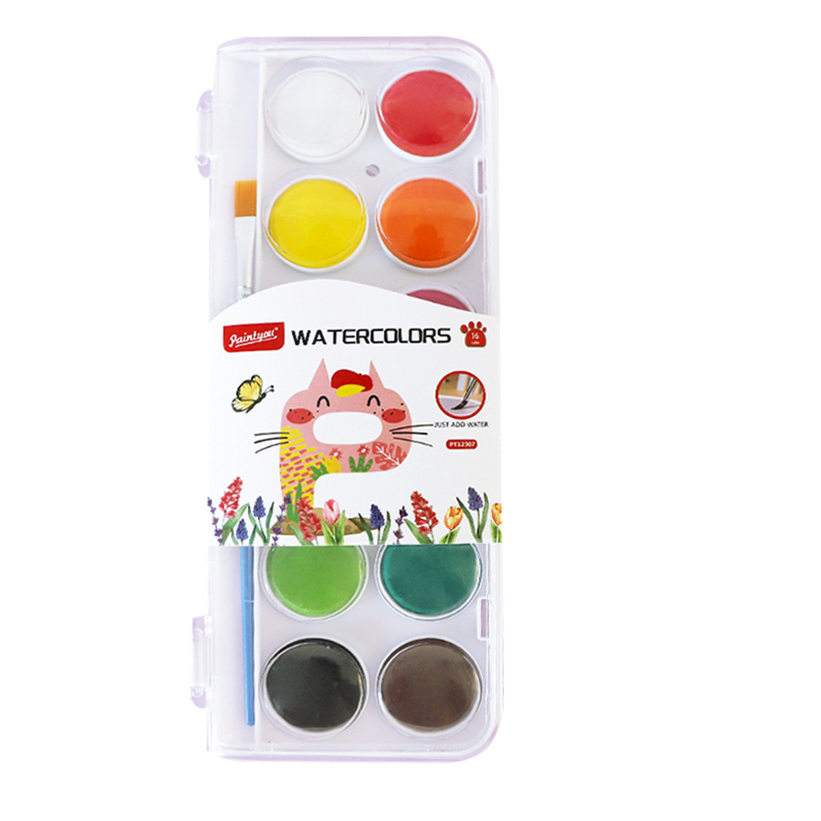 绘儿优12色初学入门固体水粉水彩颜料粉饼套装固体水彩跨境专供