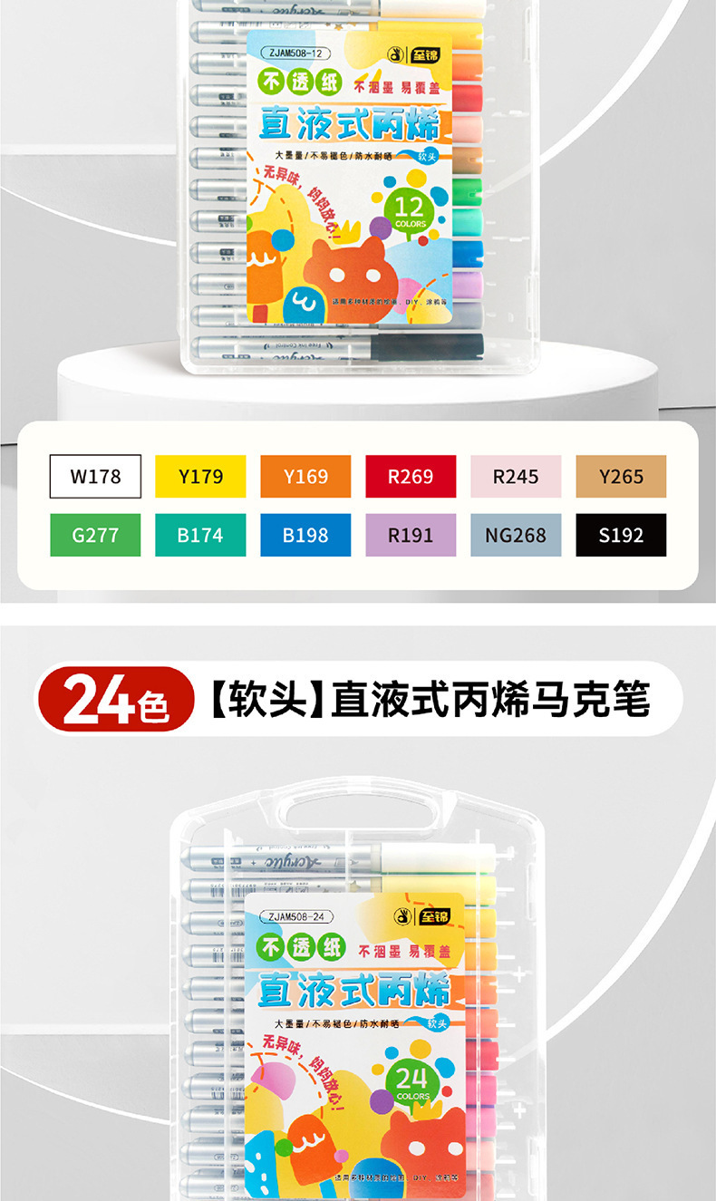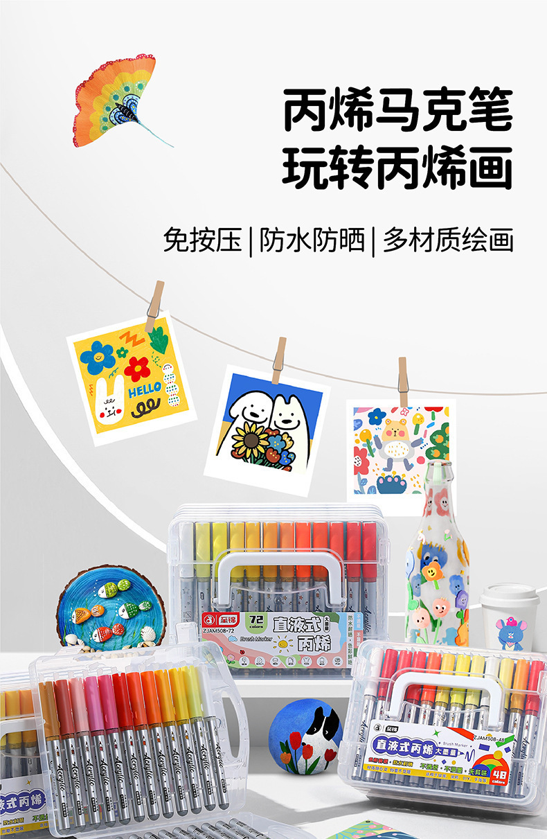 直液式丙烯马克笔软头不透色水彩笔防水DIY涂鸦彩色绘画笔学生专