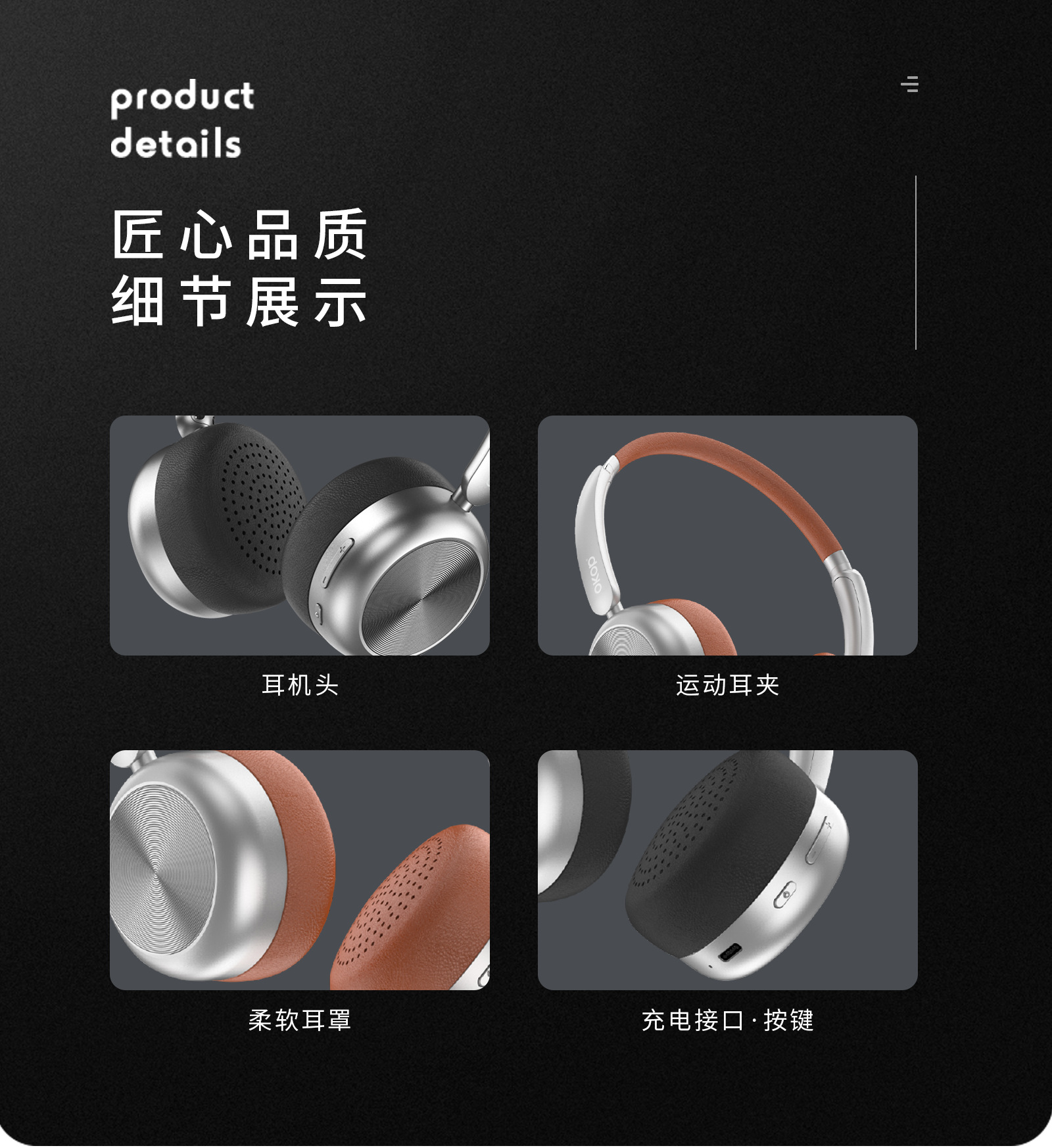 H106蓝牙耳机头戴式跨境新款复古穿搭主动降噪高颜值超长续航轻巧
