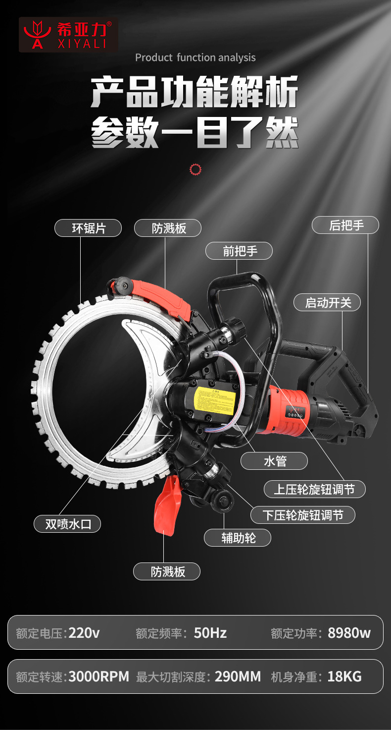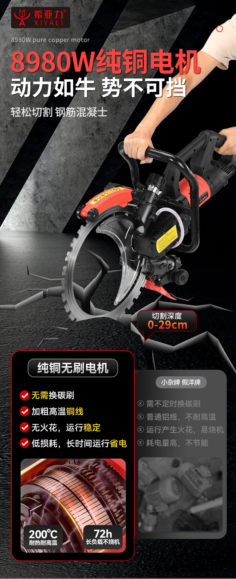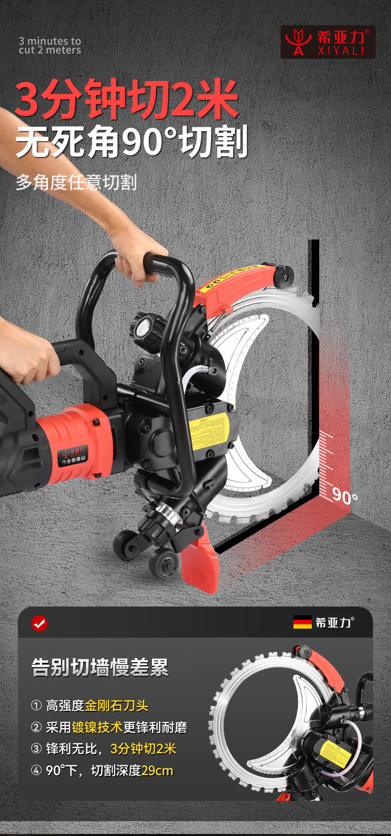 希亚力高频无刷环锯大功率手持式混凝土切墙机切割机无尘