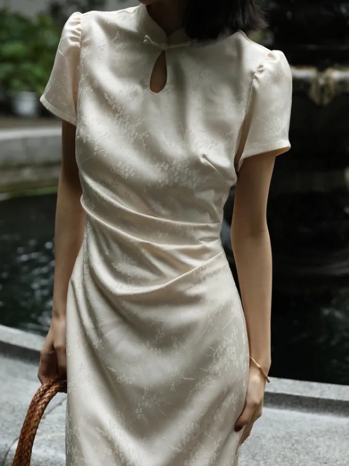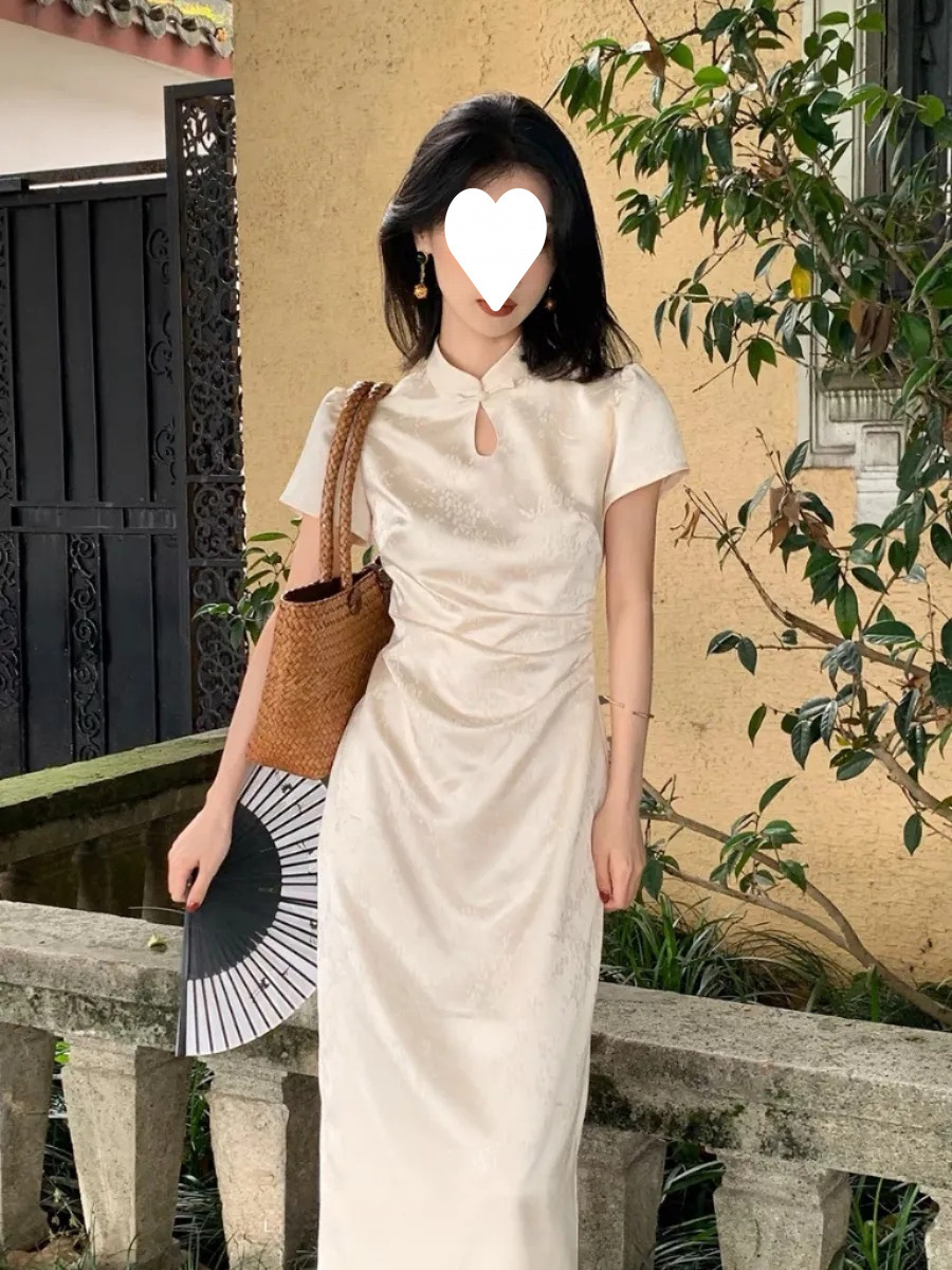 重工旗袍裙女夏季国风改良新中式连衣裙