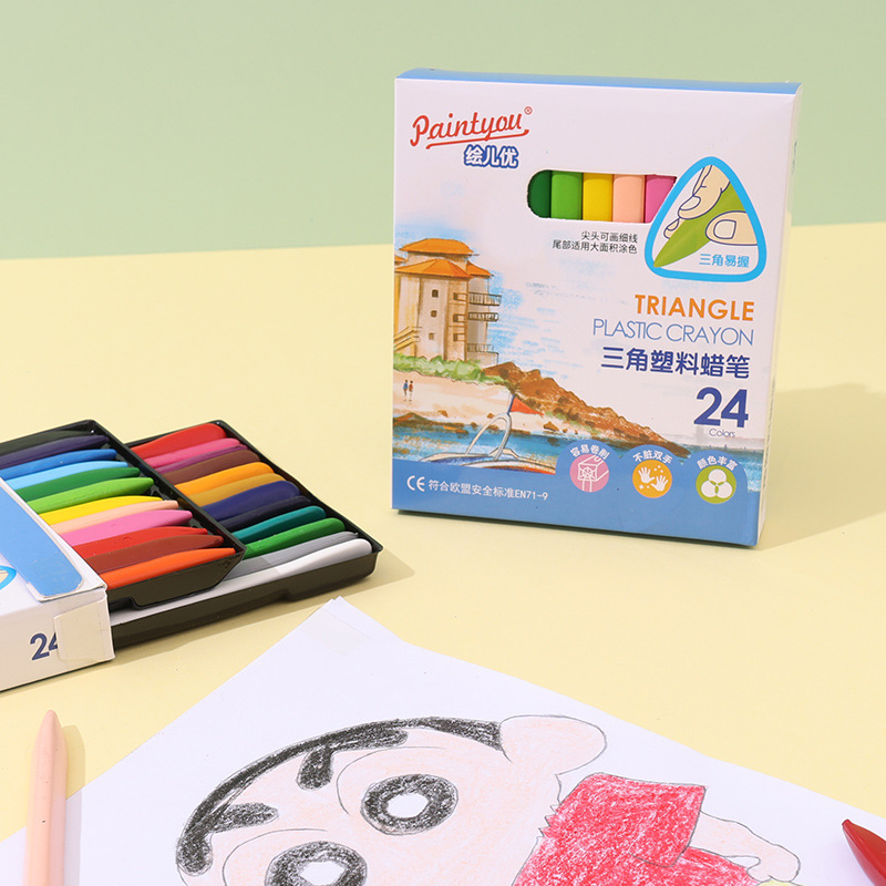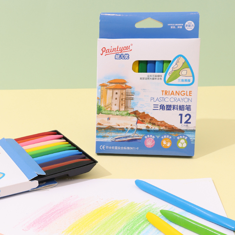 儿童三角可擦塑料蜡笔不粘手12色绘画蜡笔学生油画棒宝宝涂鸦定制