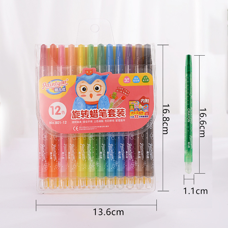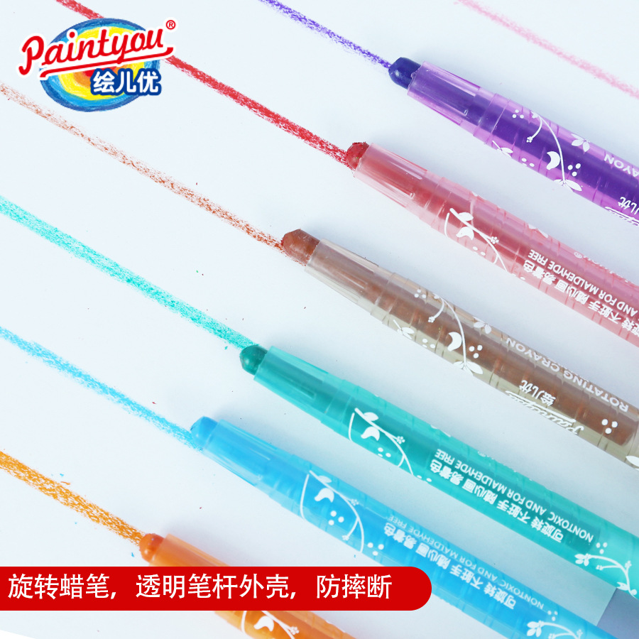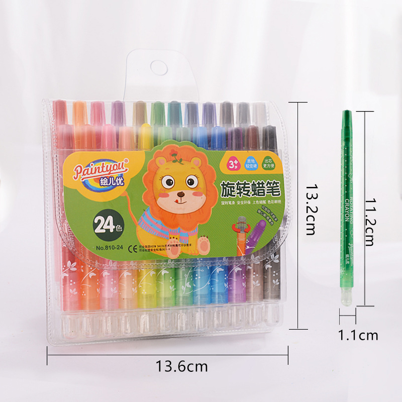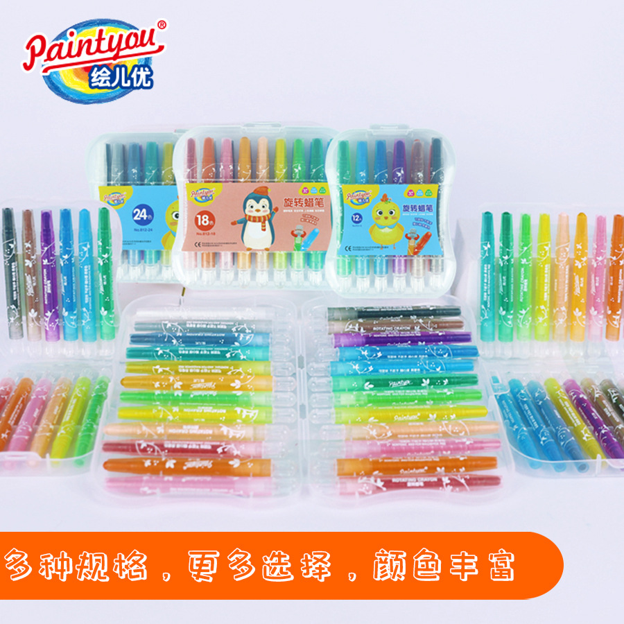 绘儿优可水洗不脏手旋转蜡笔儿童涂鸦12/24色36色画笔蜡笔塑盒