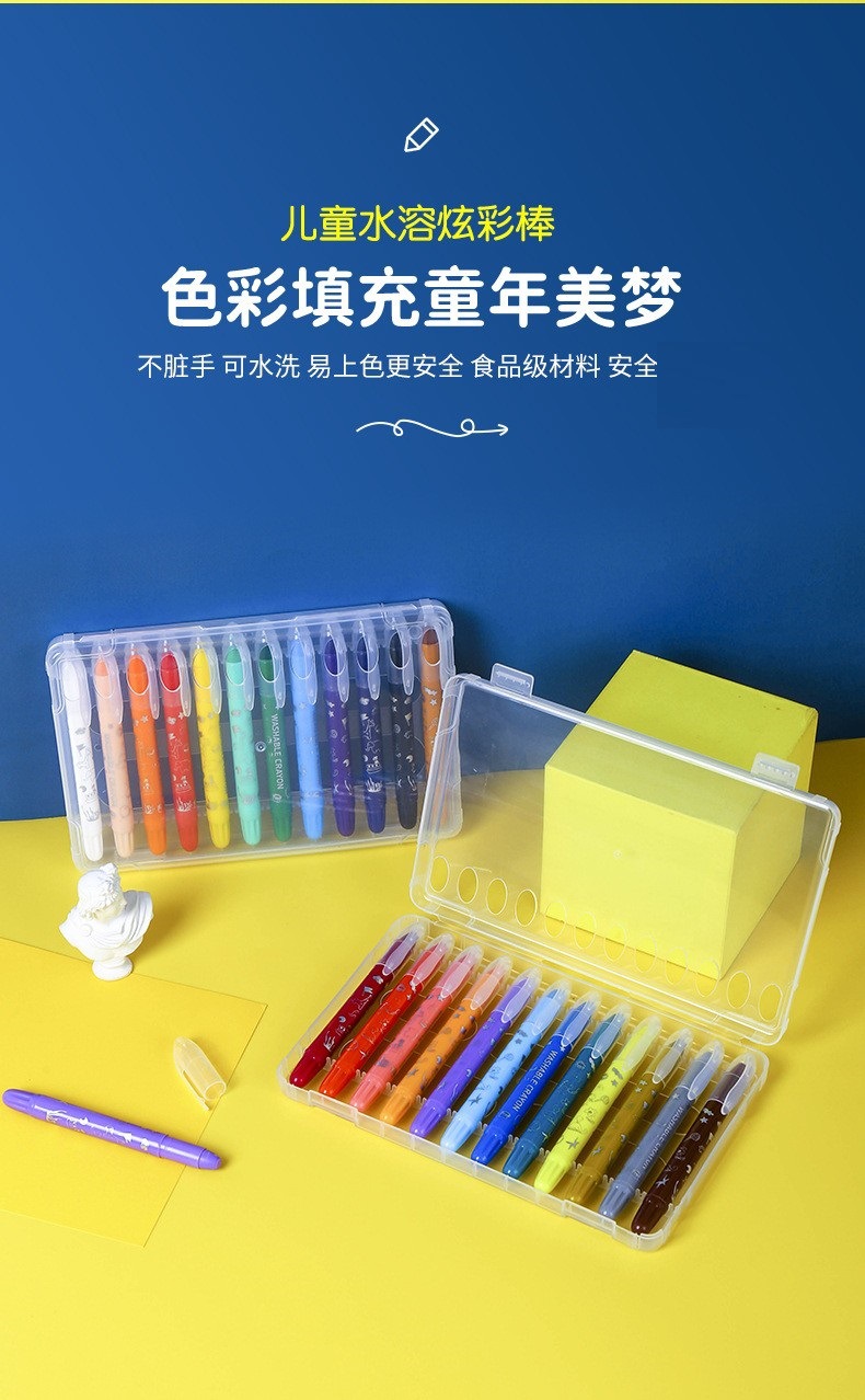 厂家批发24色炫彩棒安全不脏手幼儿园水溶彩绘棒丝滑画室绘画用