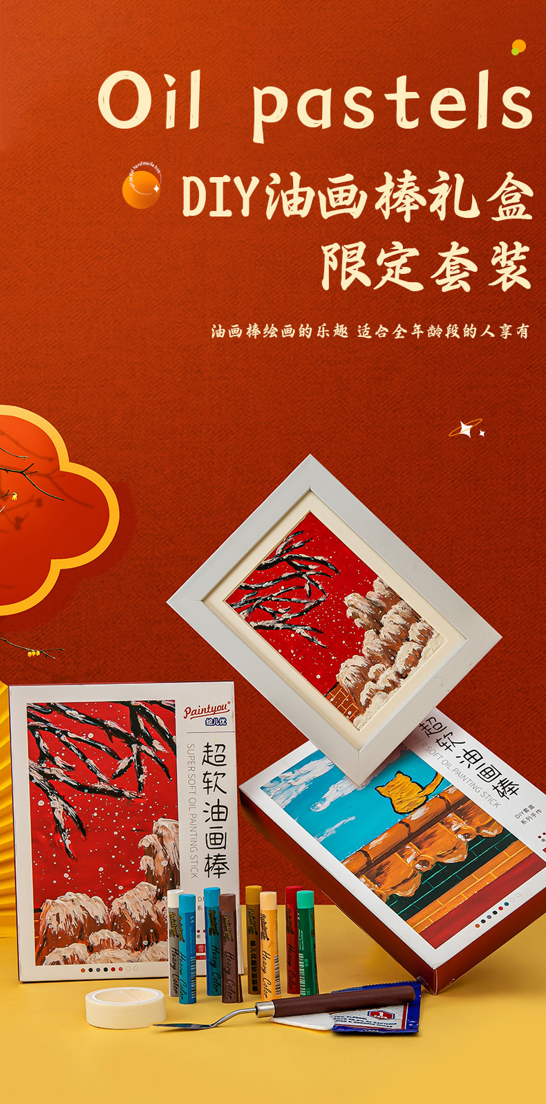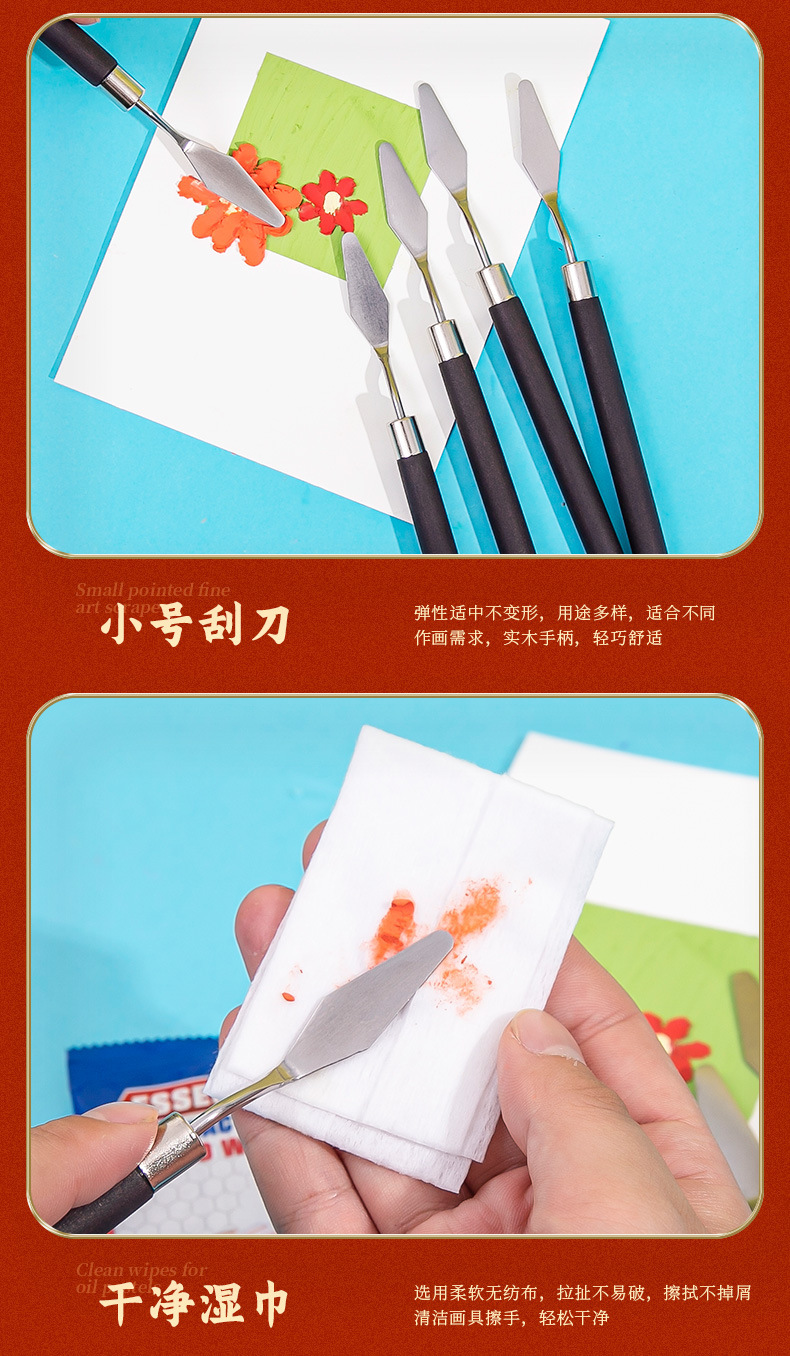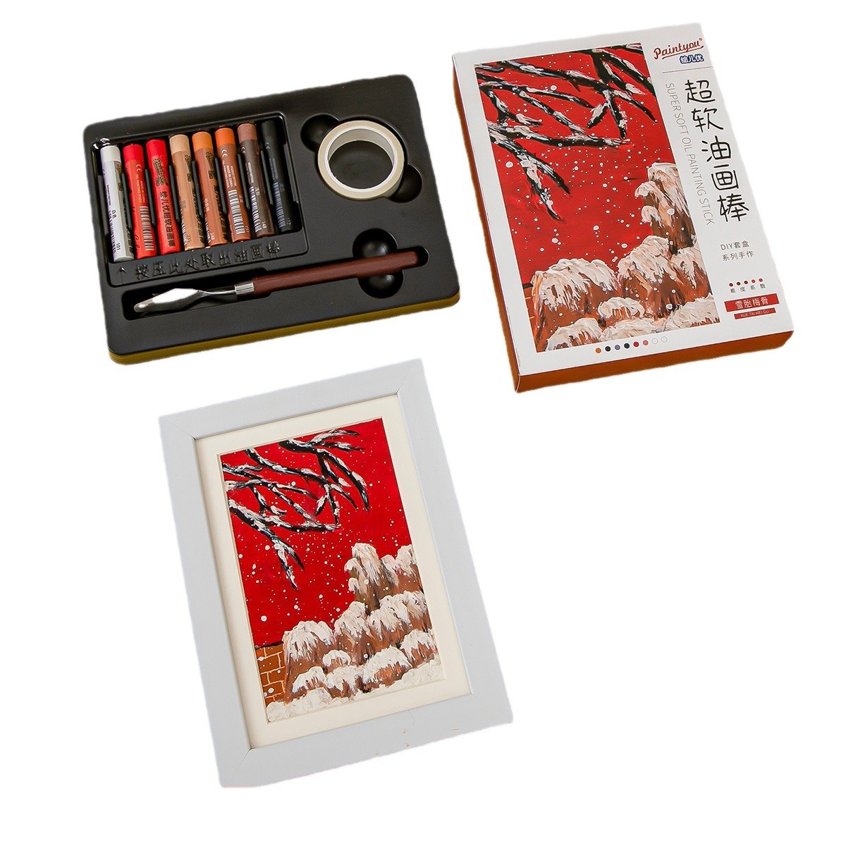 超软重彩油画棒软性蜡笔绘画刮刀工具套装画框手工肌理画diy