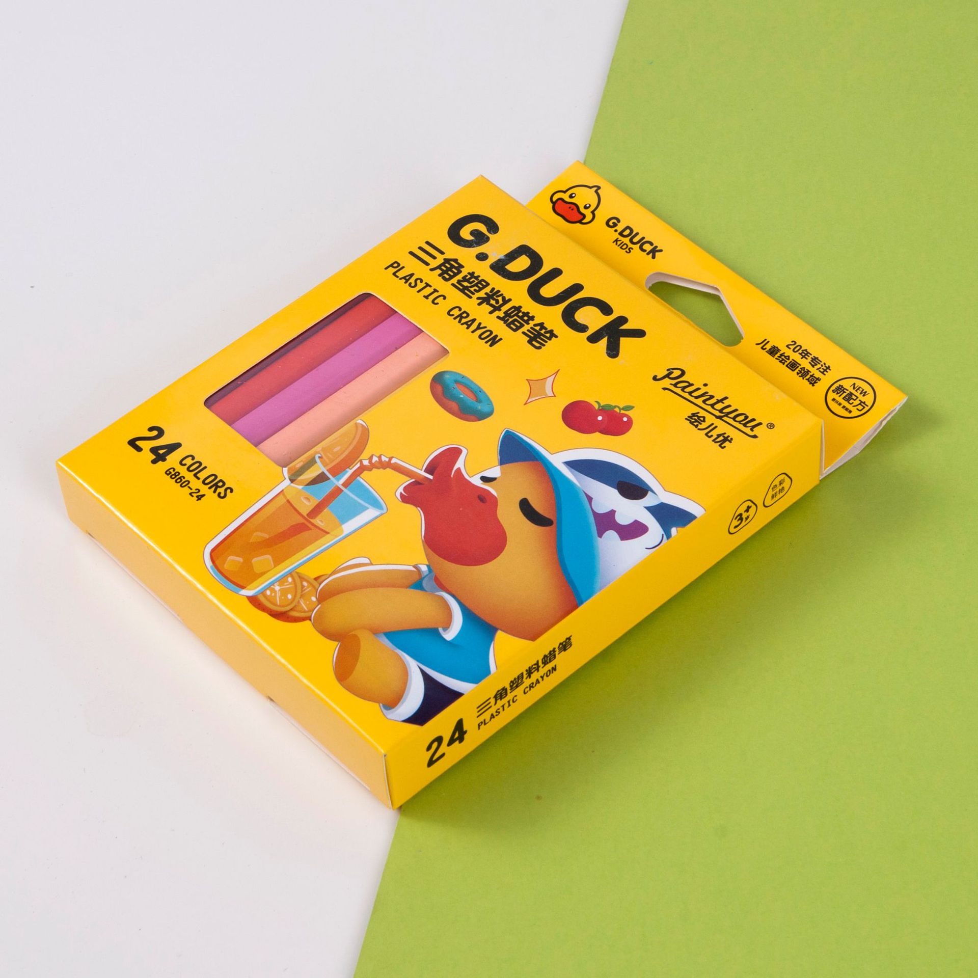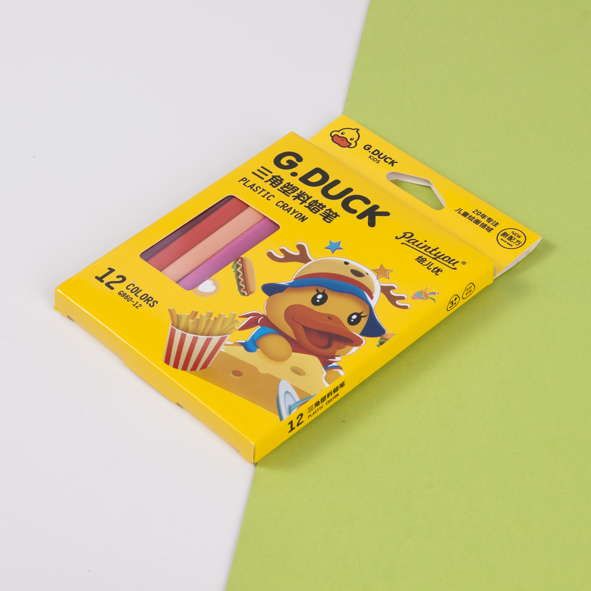 绘儿优卡通塑料蜡笔幼儿园小学美术专用蜡笔不沾手可擦三角蜡笔