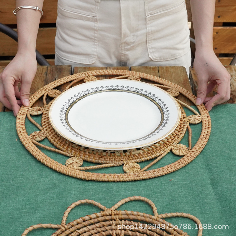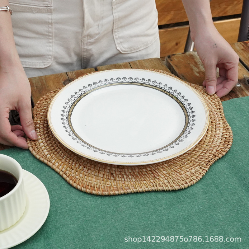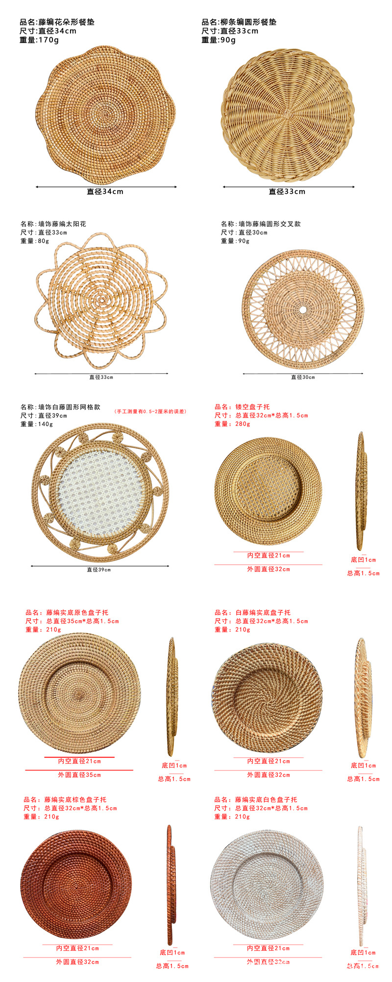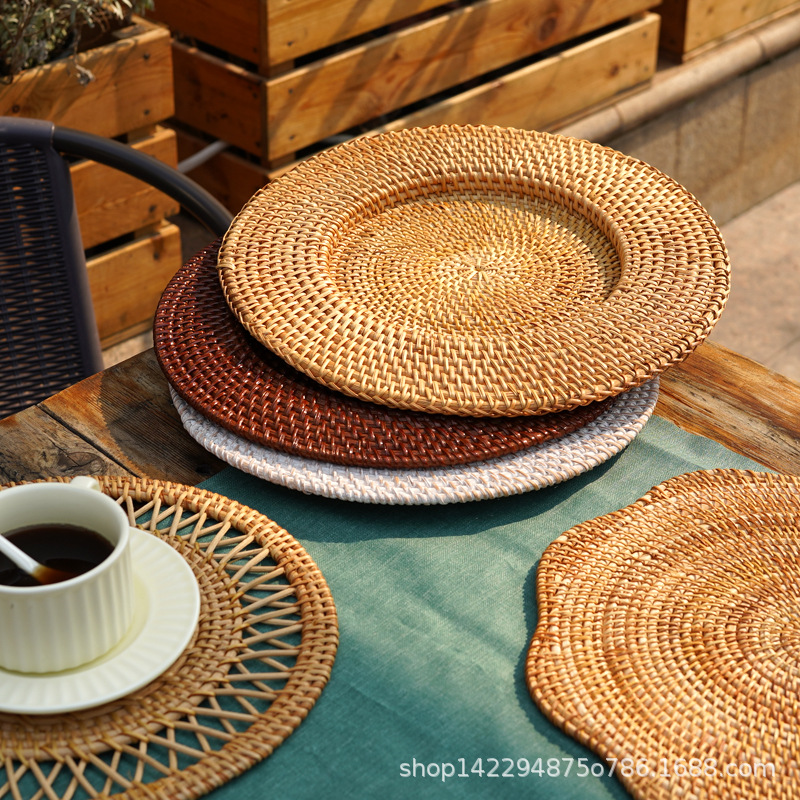 跨境藤编织托盘酒店宴会盘垫西餐摆盘欧美婚庆装饰盘牛排咖啡托盘