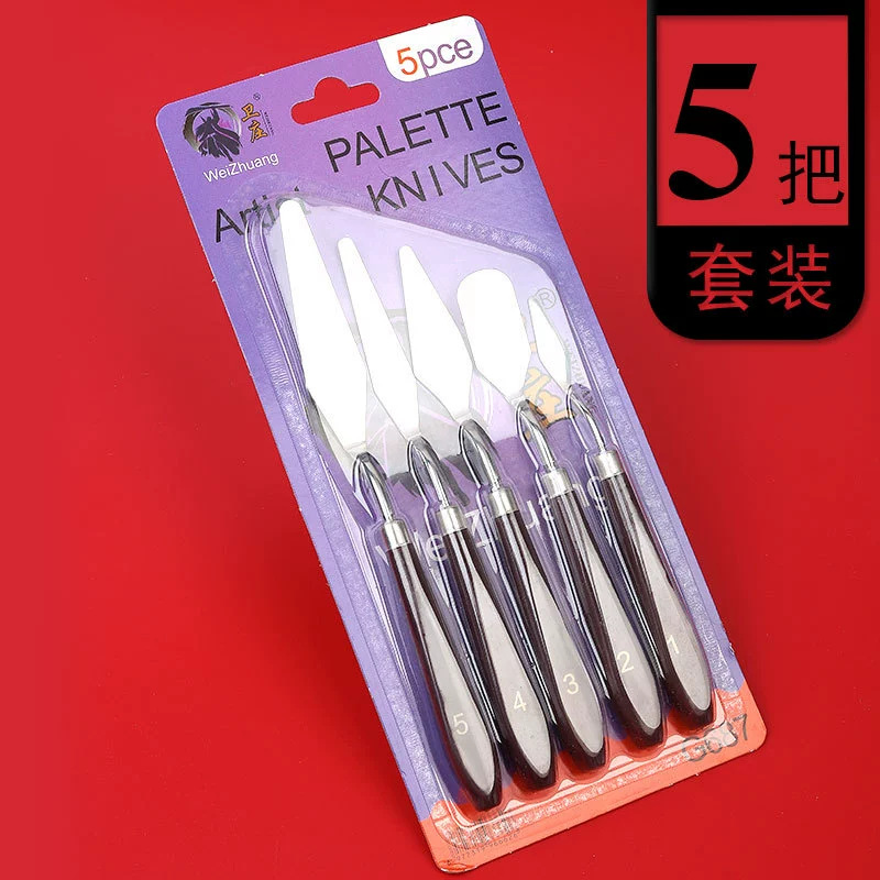 美术油画刀新款不锈钢调色刮刀水粉颜料刮刀5件套装外贸跨境供应