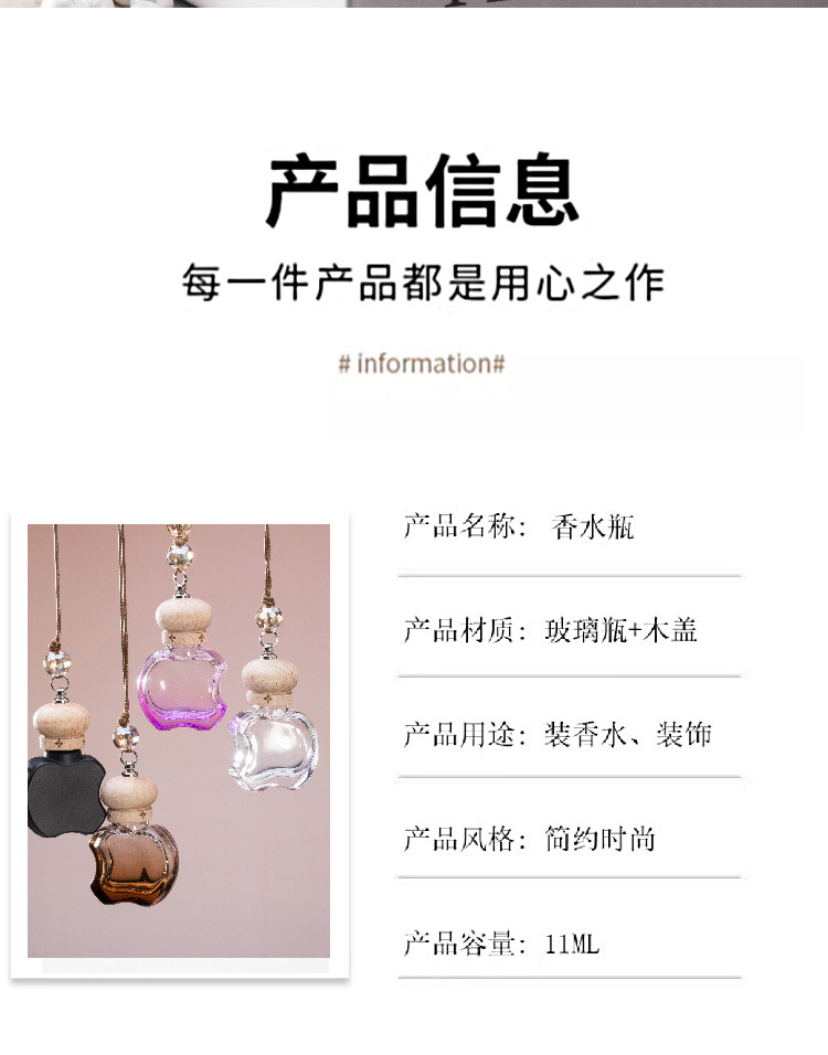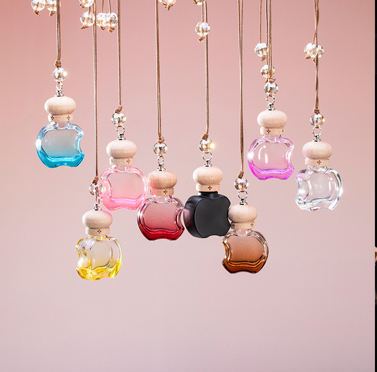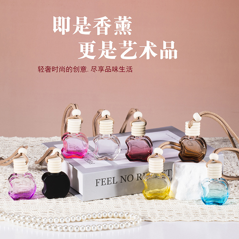创意苹果车载香薰瓶彩色异形香水分装瓶带绳子车内饰品扩香器瓶子