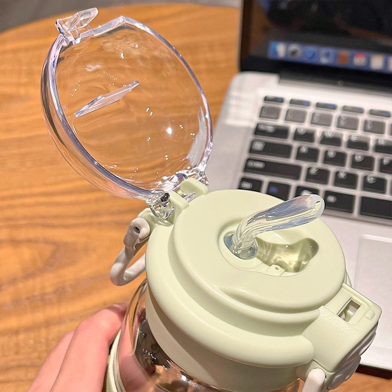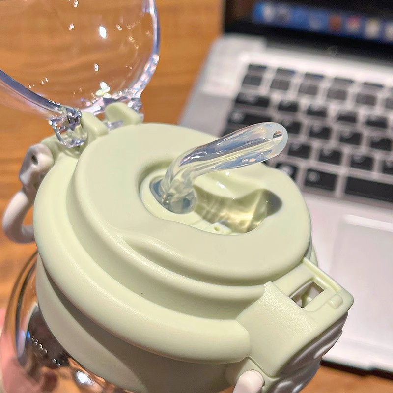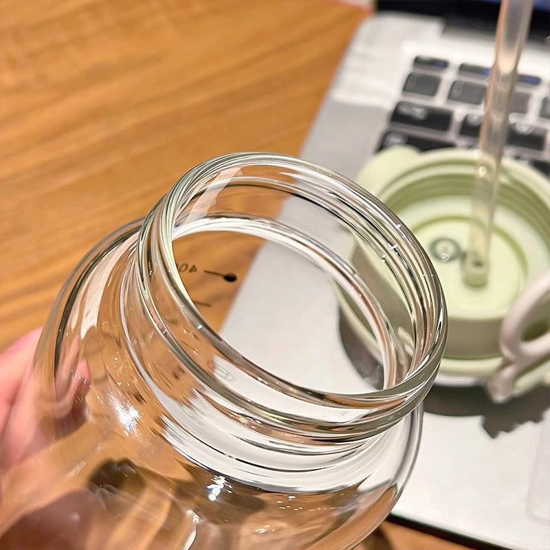 双饮玻璃水杯女生ins高颜值耐高温防烫可爱轻奢高级感带吸管杯子