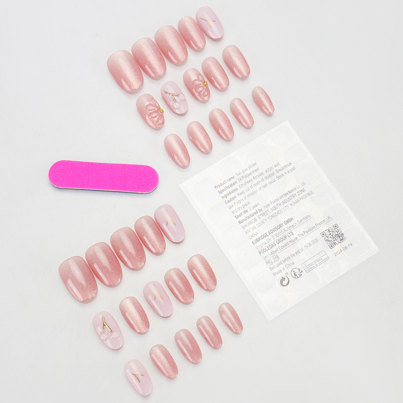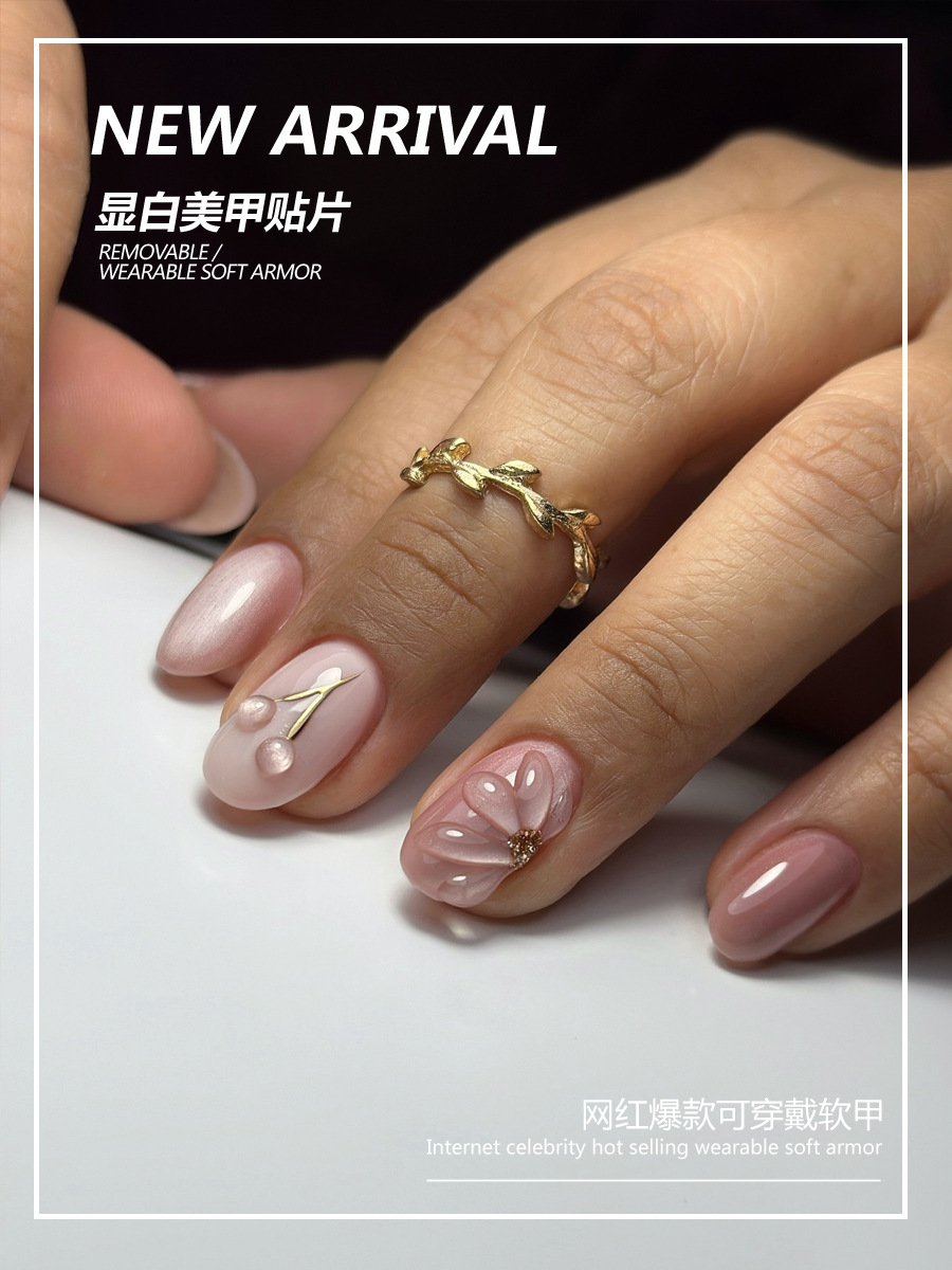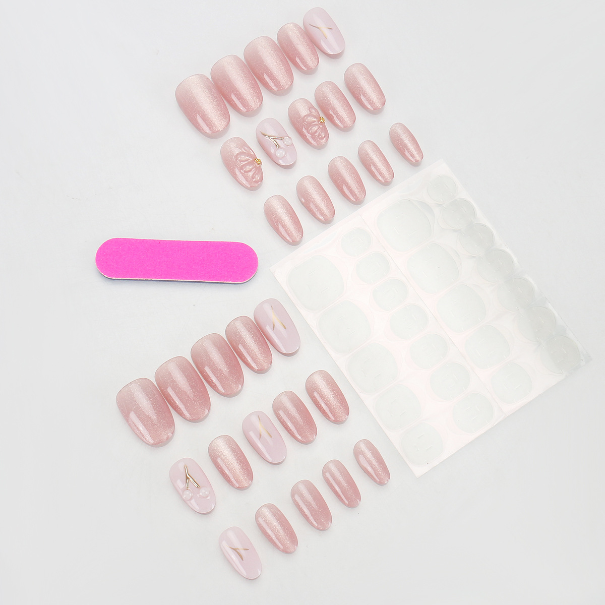 花朵金枝穿戴甲裸粉渐变猫眼温柔显白美甲甲片小清新穿戴式假指甲