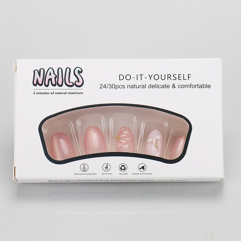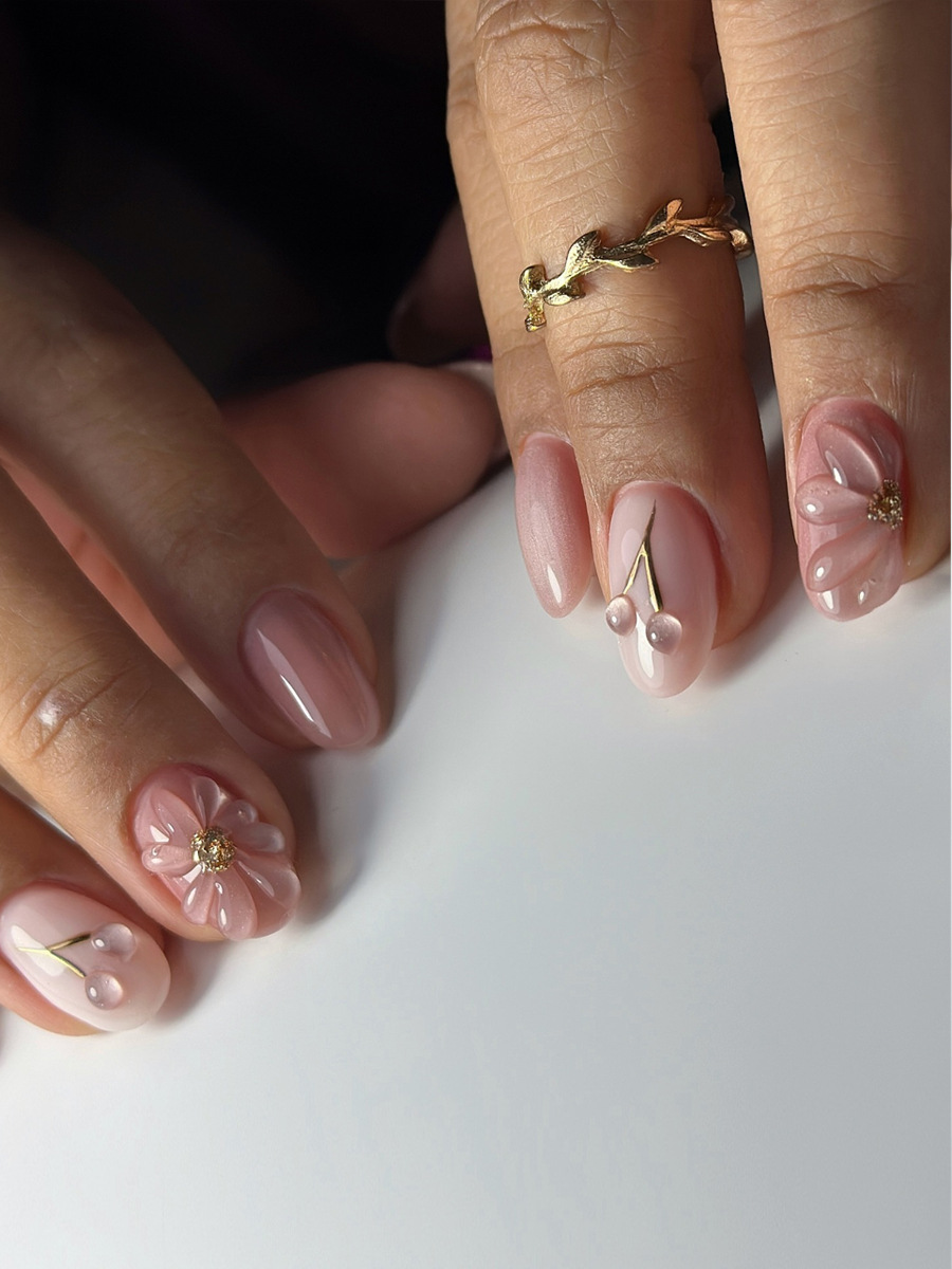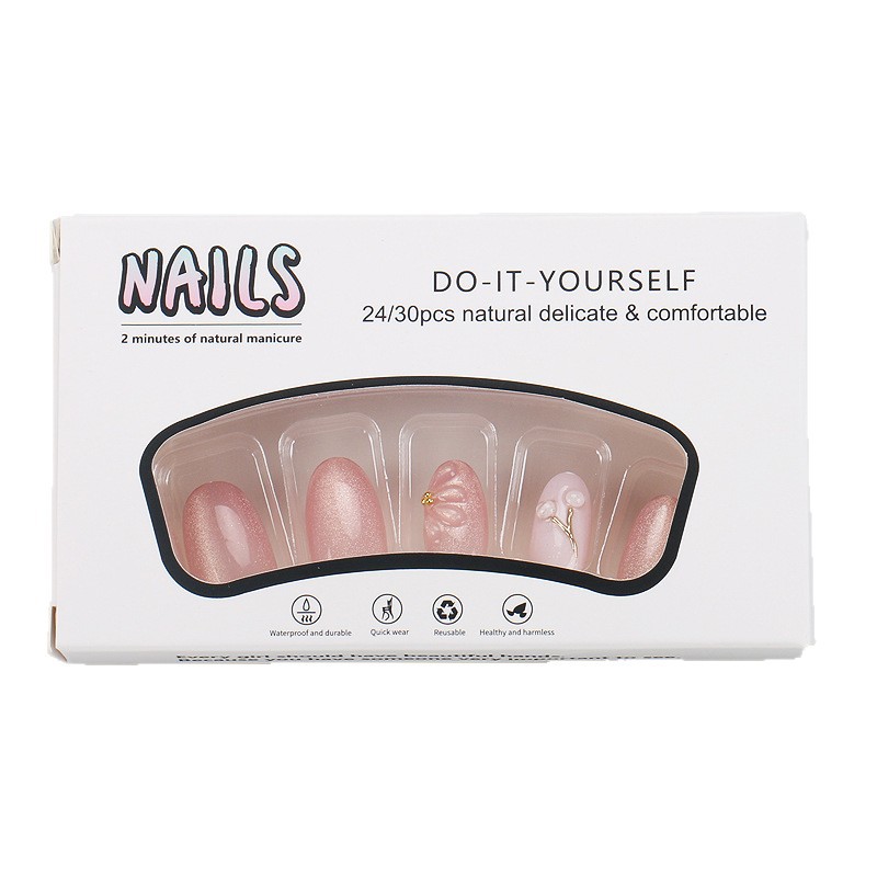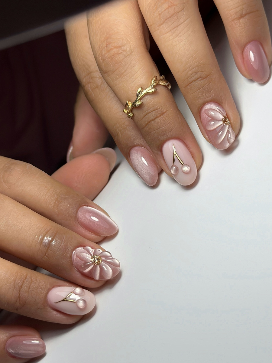 花朵金枝穿戴甲裸粉渐变猫眼温柔显白美甲甲片小清新穿戴式假指甲