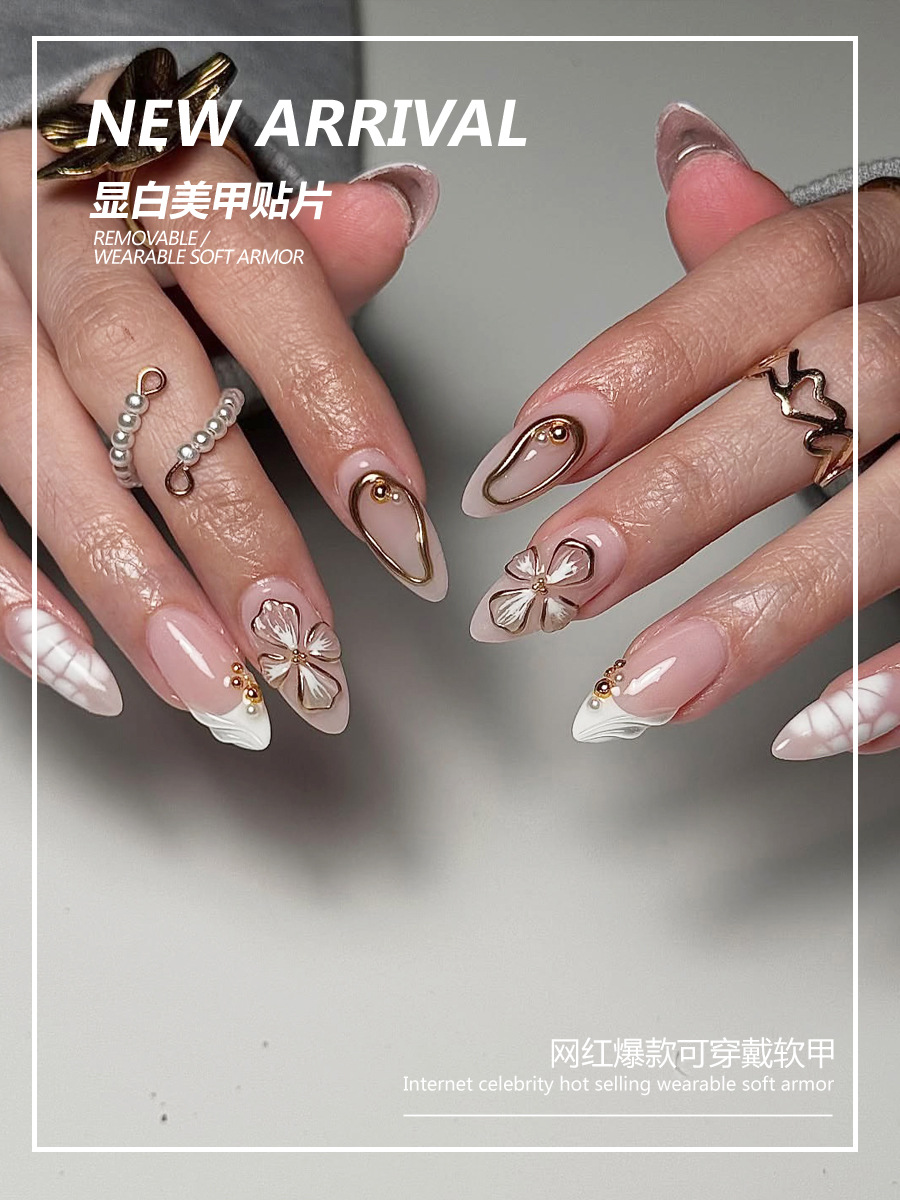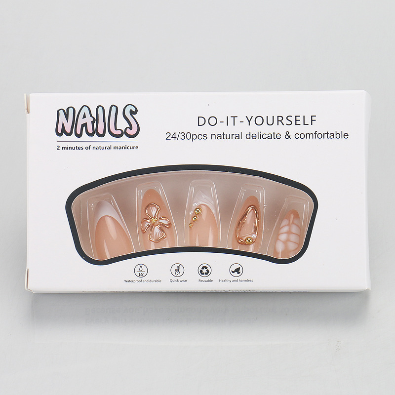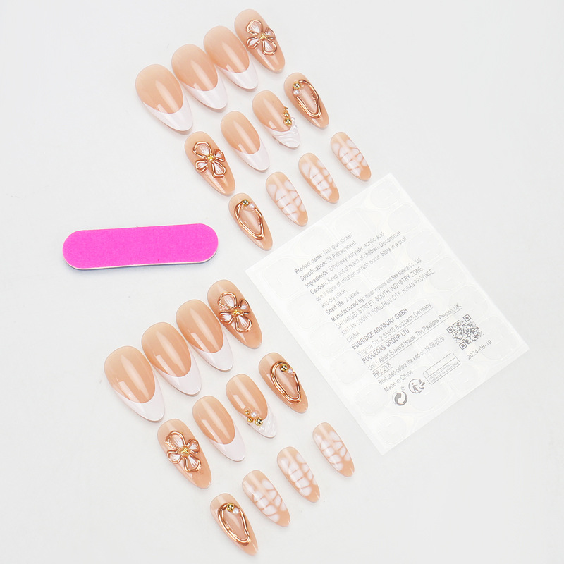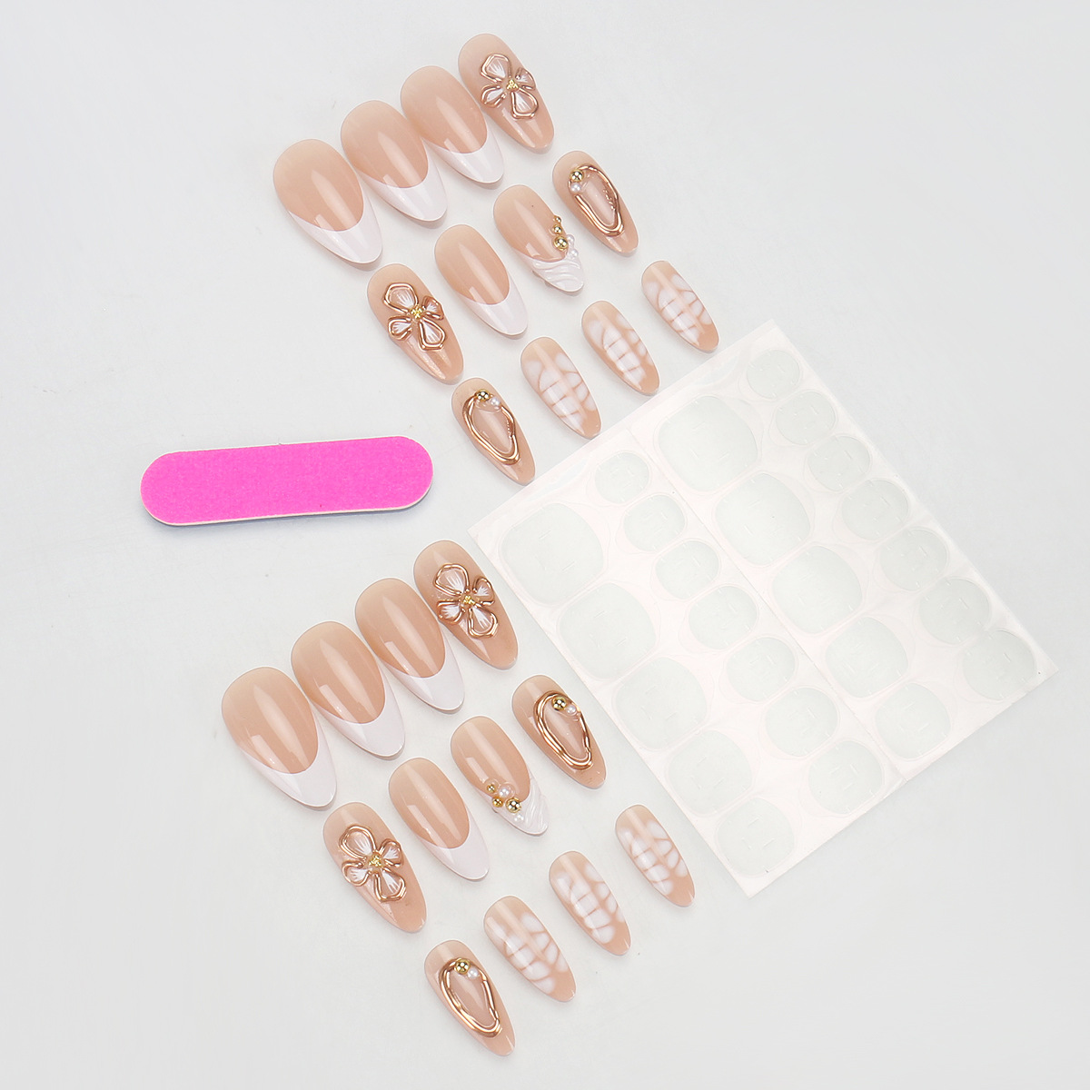 跨境穿戴甲批发法式白边欧美热销美甲片成品24片外贸假指甲可拆卸