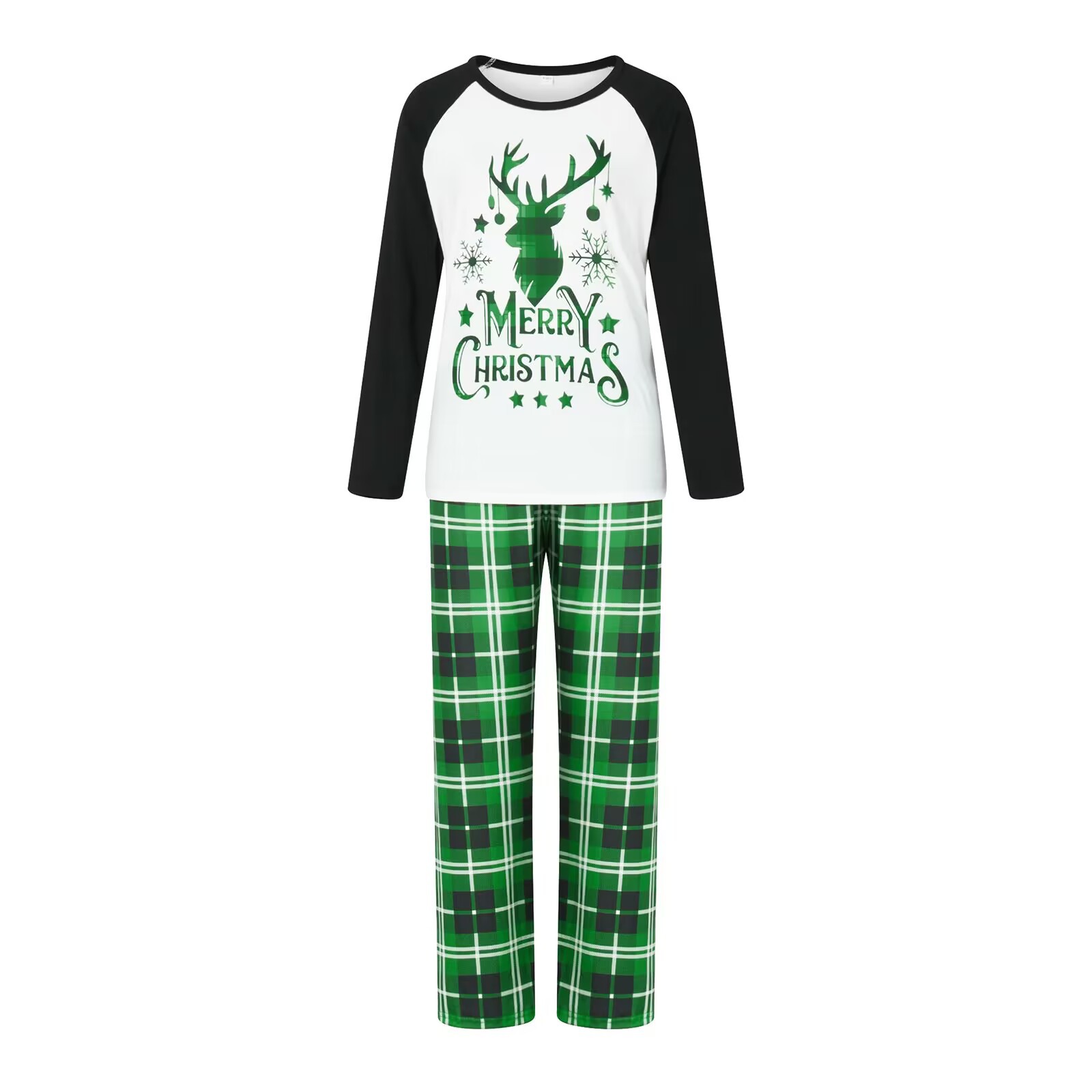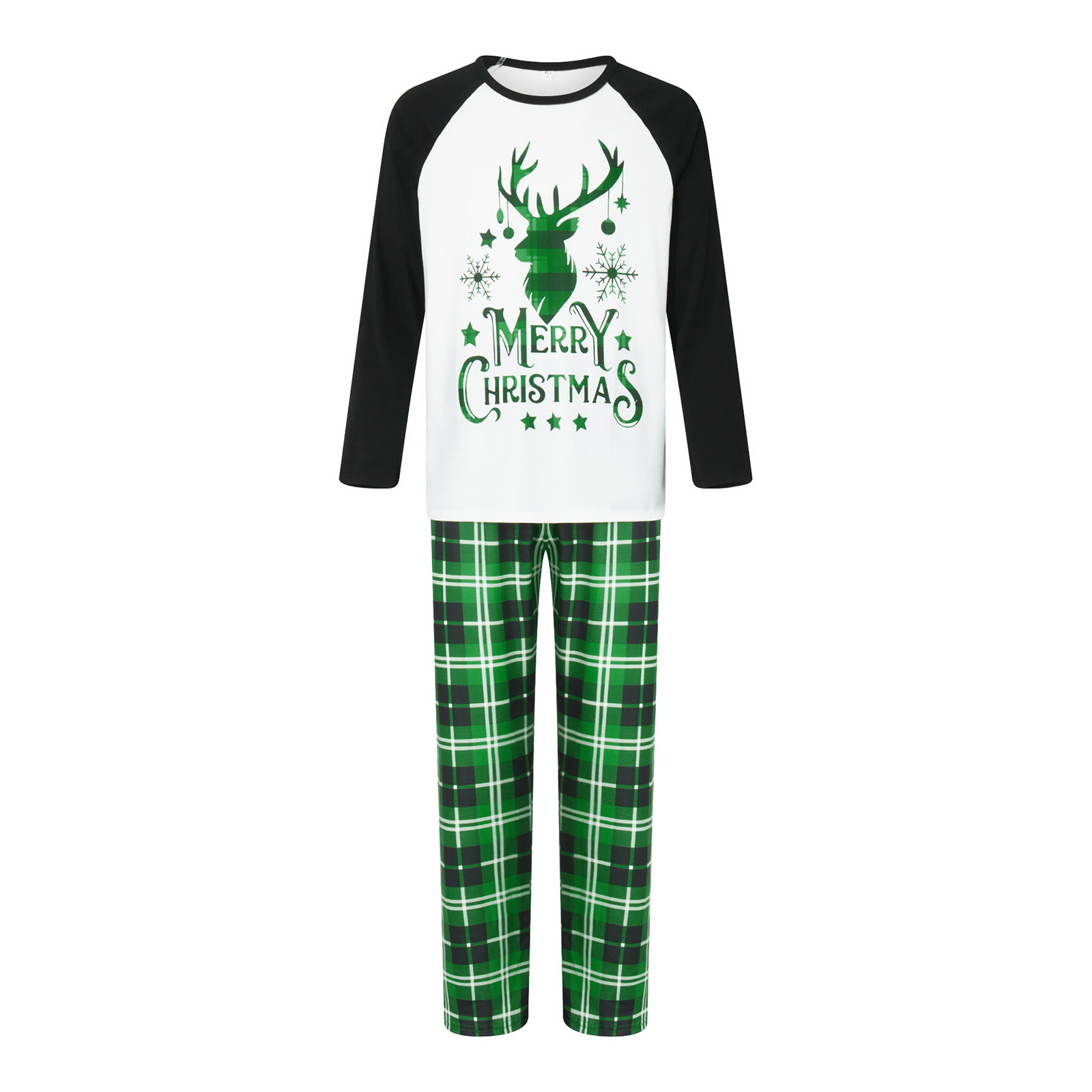 2025欧美亲子家居服圣诞家居服休闲亲子套装格纹拼接印花家居服
