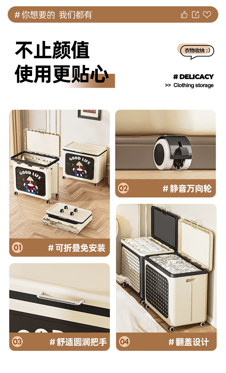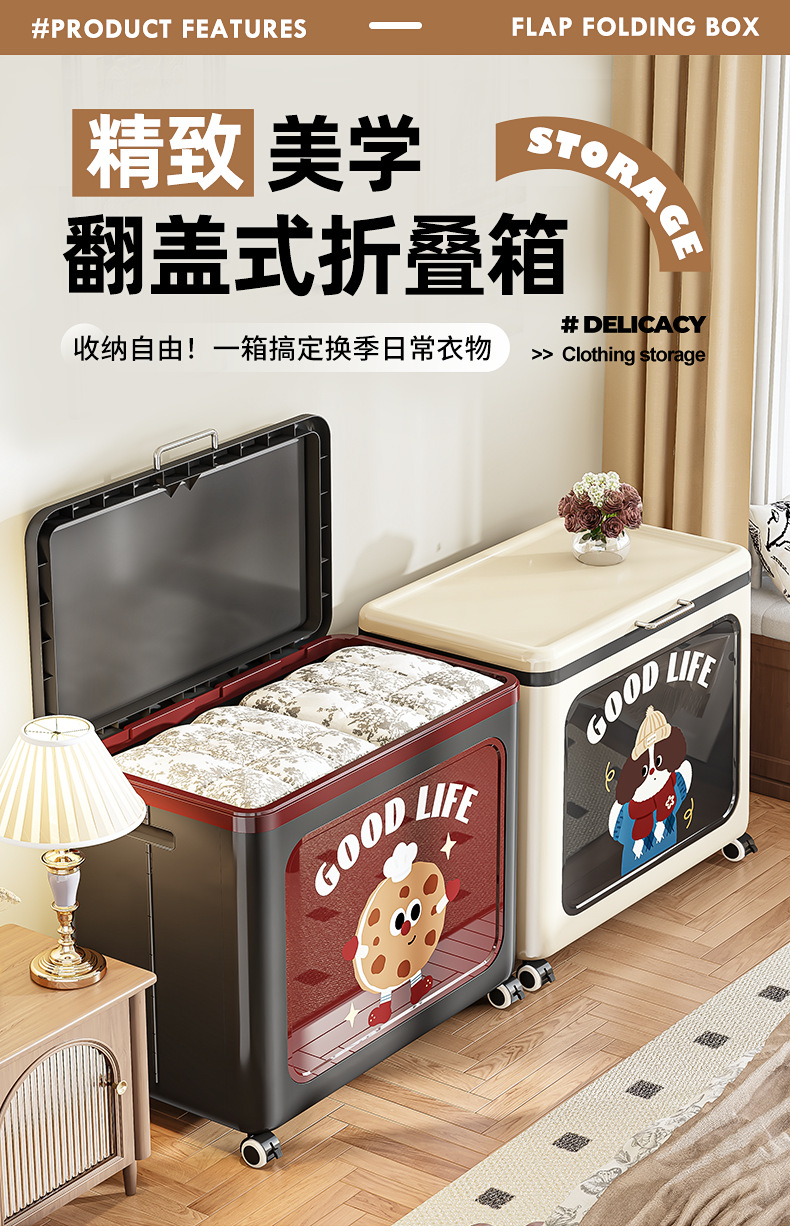 收纳箱可翻盖大号大容量家用卧室玩具收纳筐可折叠衣服收纳整理箱