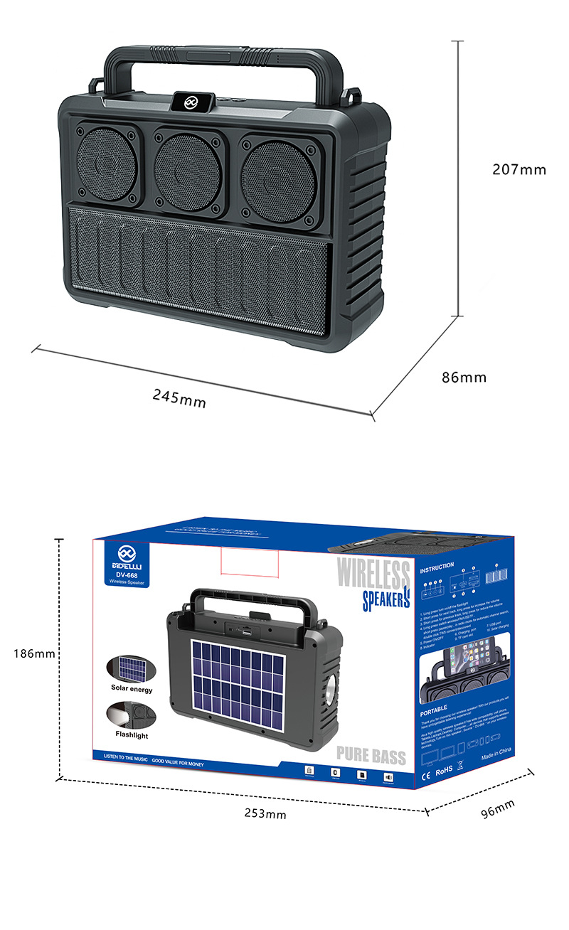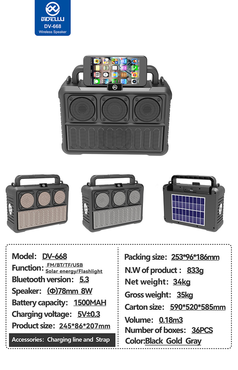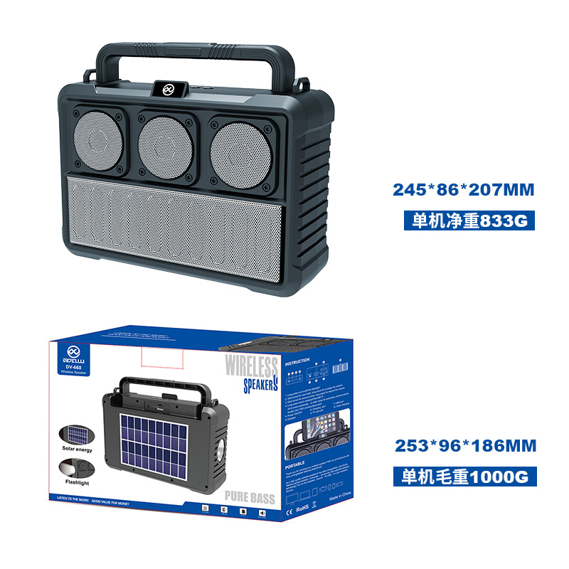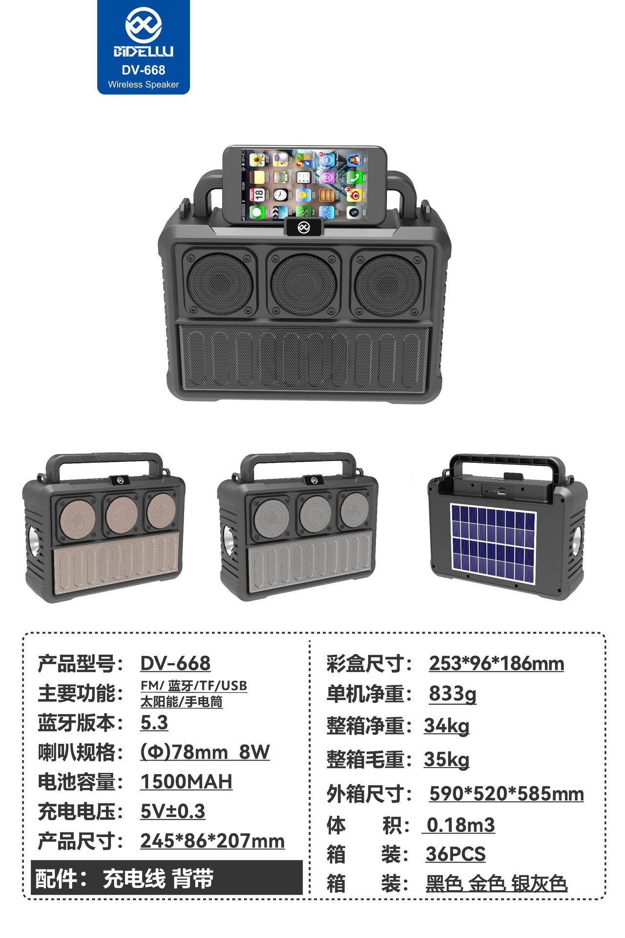 DV-668 跨境太阳能蓝牙音响户外大音量非洲市场收音机手电筒音箱