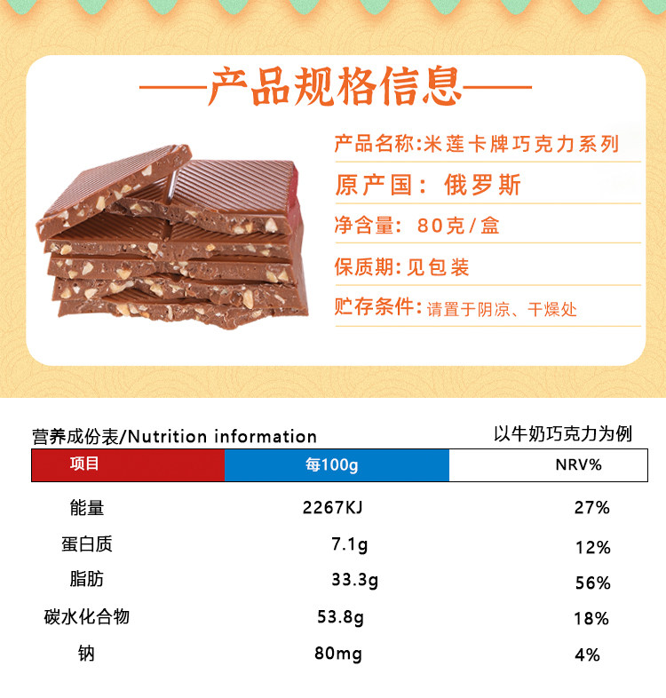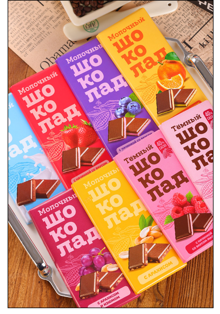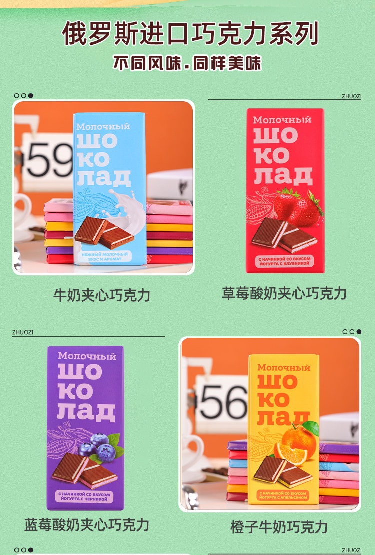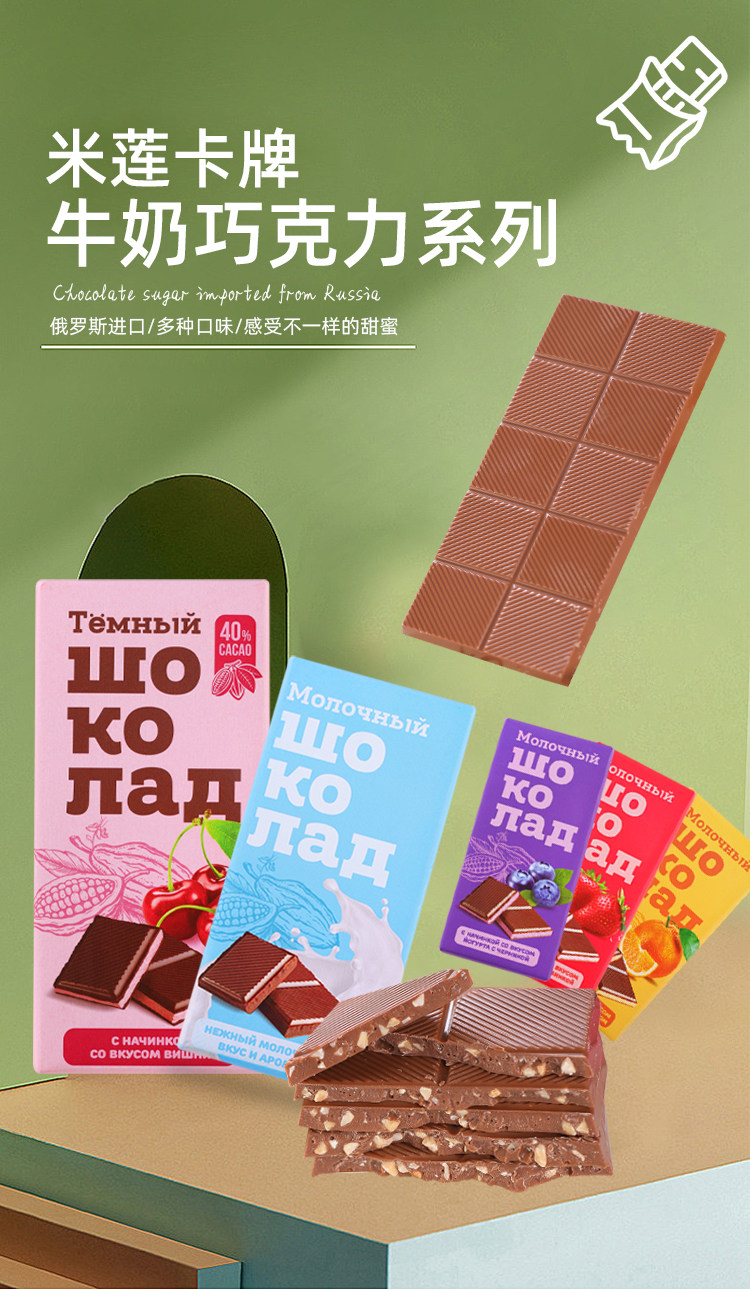 俄罗斯进口米莲卡牌酸奶味夹心黑巧克力制品牛奶巧克力多口味80克