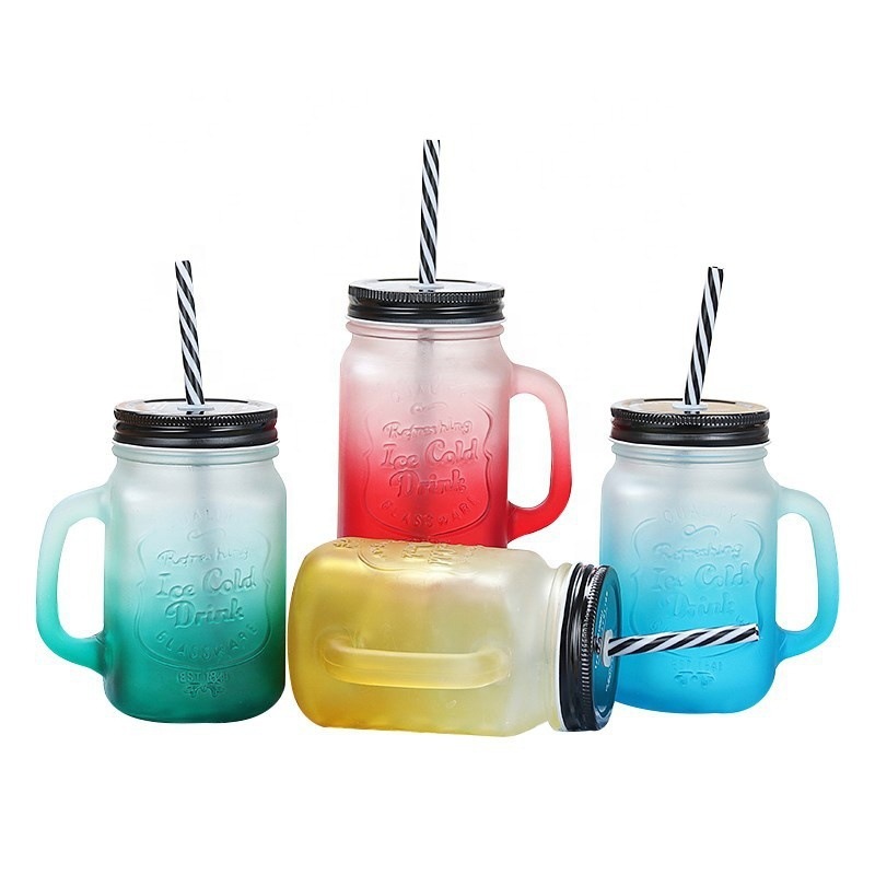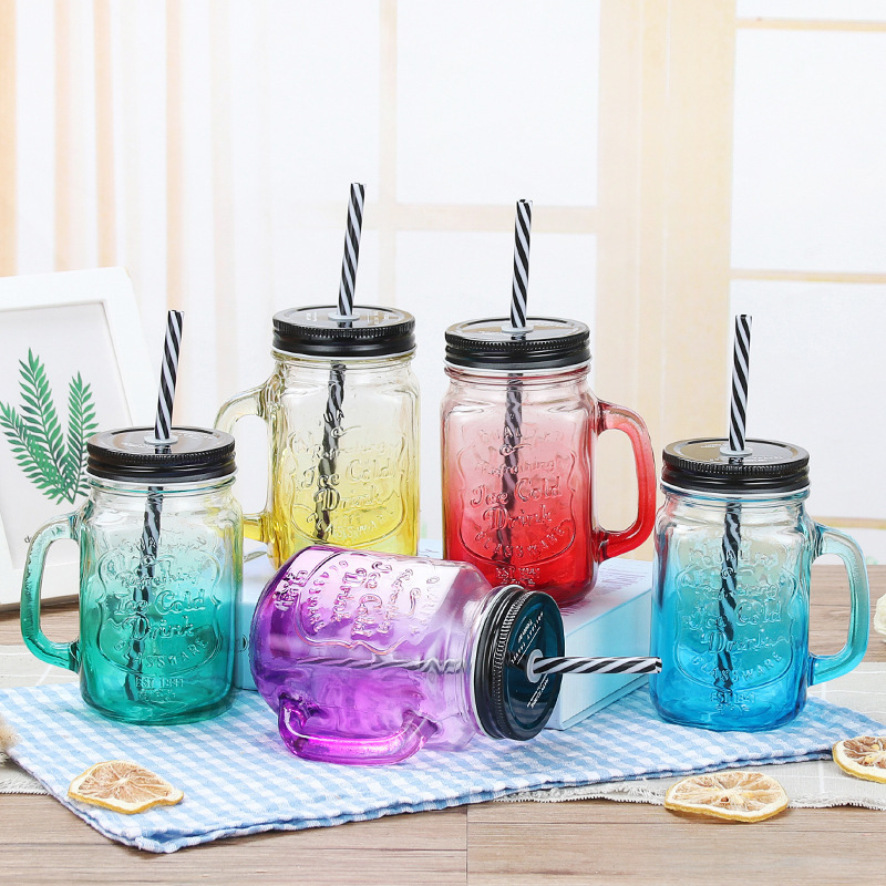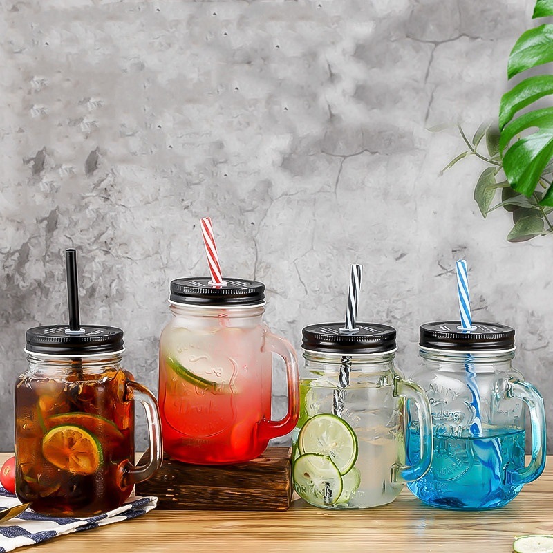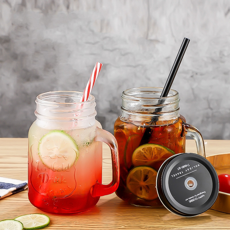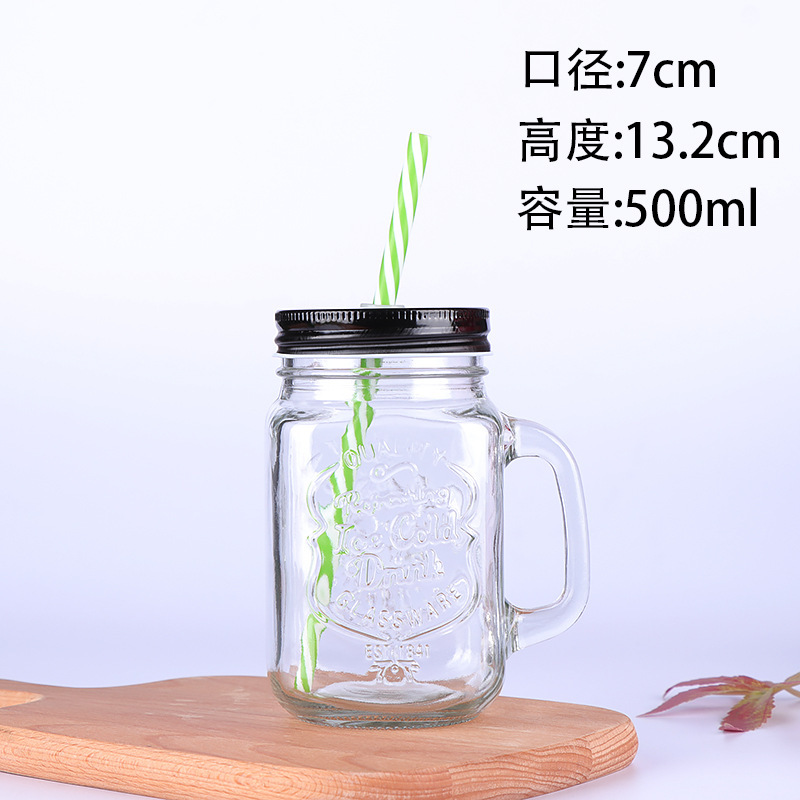 500ml把子杯梅森公鸡杯透明带盖玻璃杯奶茶冷饮饮料杯泡茶喝水杯