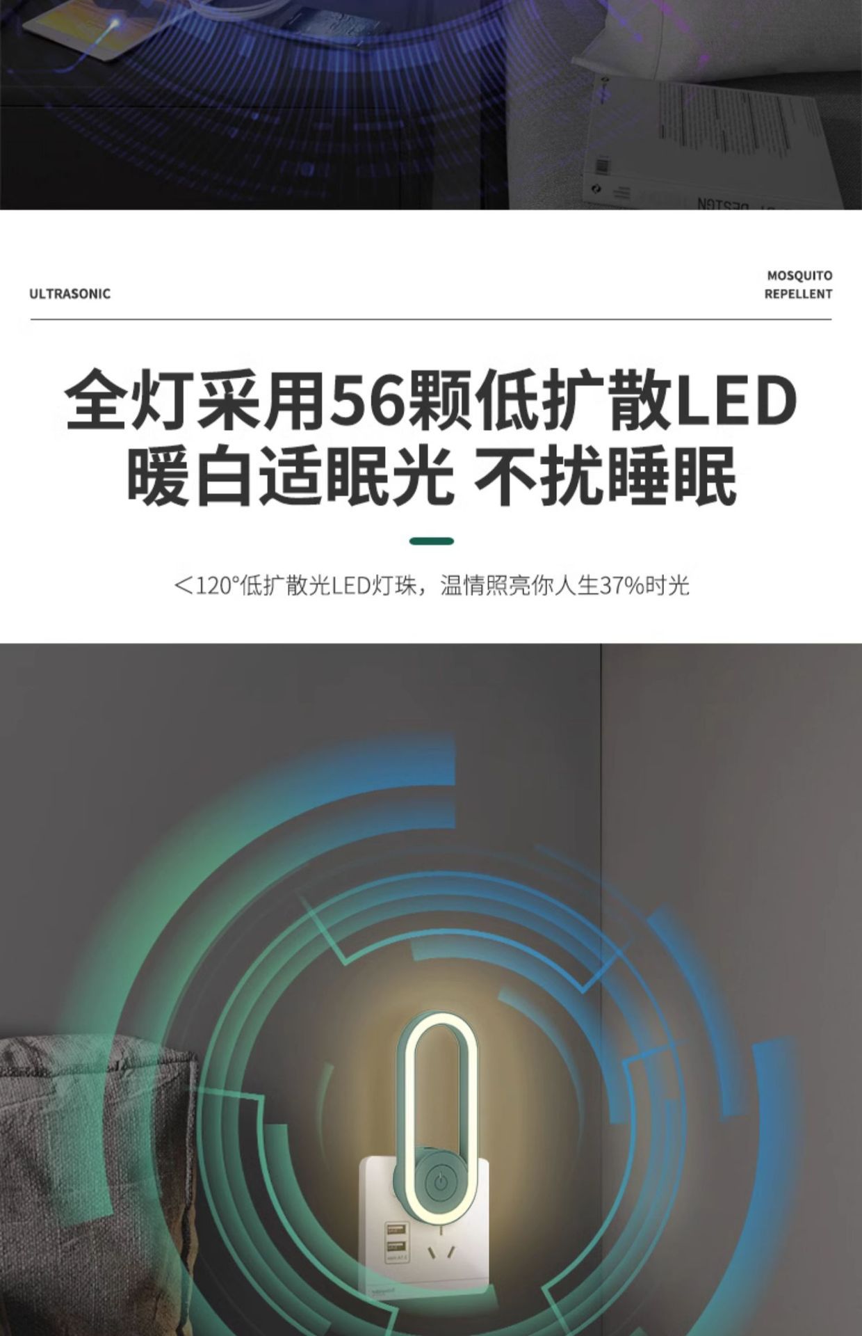 超声波驱蚊神器灭蚊灯室内家用静音婴幼儿孕妇插电式小夜灯蚊虫驱