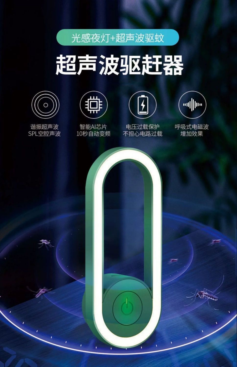 2025新款超声波驱蚊神器灭蚊灯家用室内静音婴幼儿孕妇防蚊驱赶器