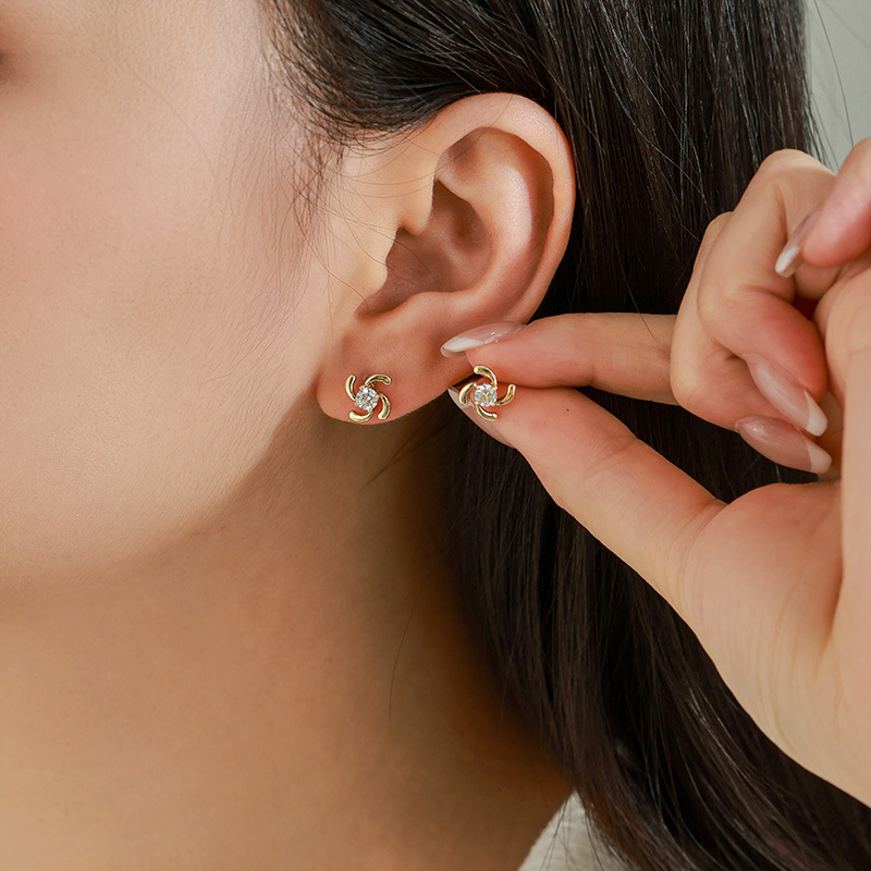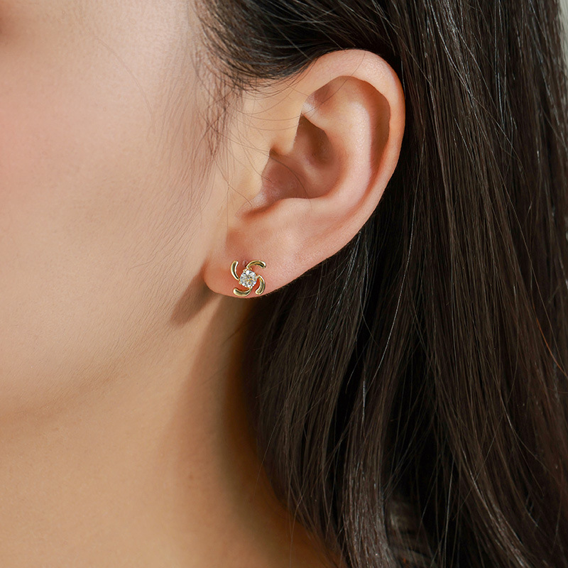 旭平 铜合金电镀14k金色单锆石风车耳钉新款小巧精致时尚耳饰批发